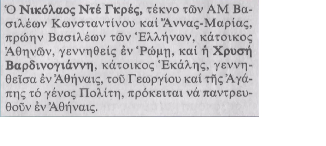Ο Νικόλαος Ντε Γκρες και η Χρυσή Βαρδινογιάννη θα ενωθούν με τα ιερά δεσμά του γάμου, την ερχόμενη Παρασκευή 7 Φεβρουαρίου.