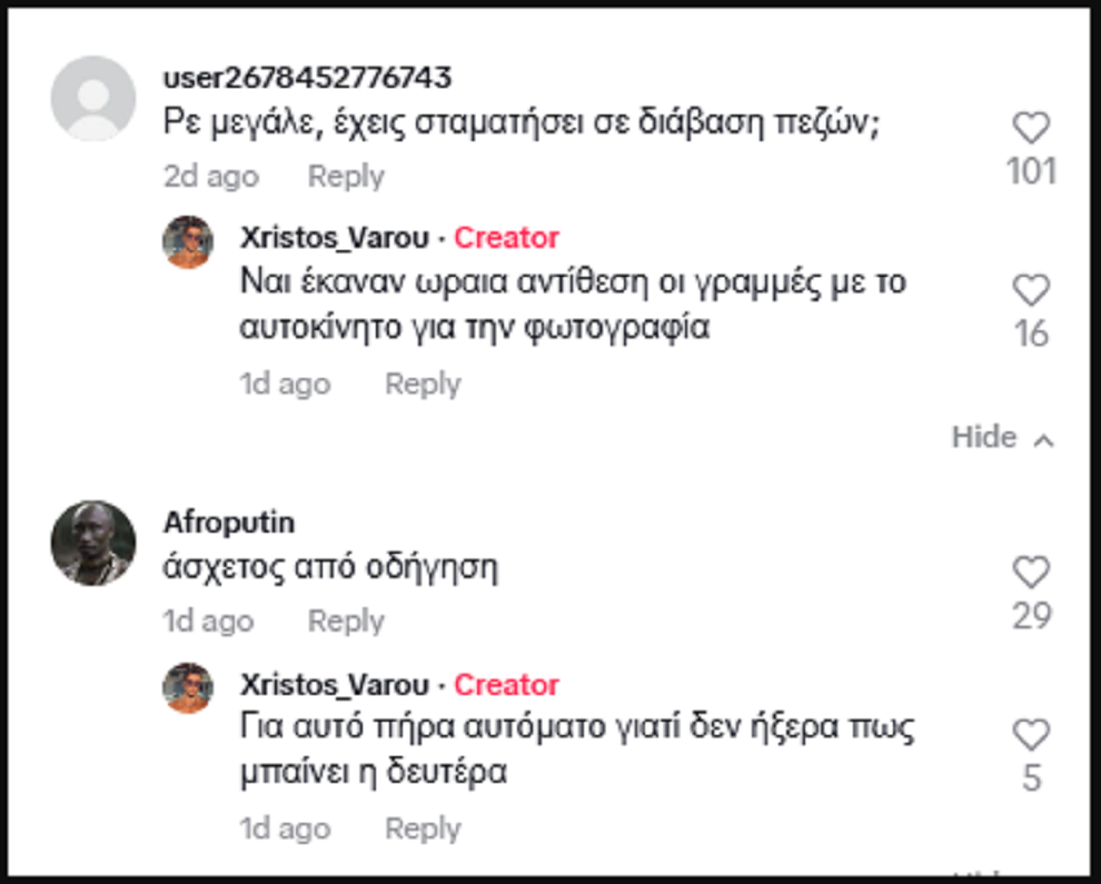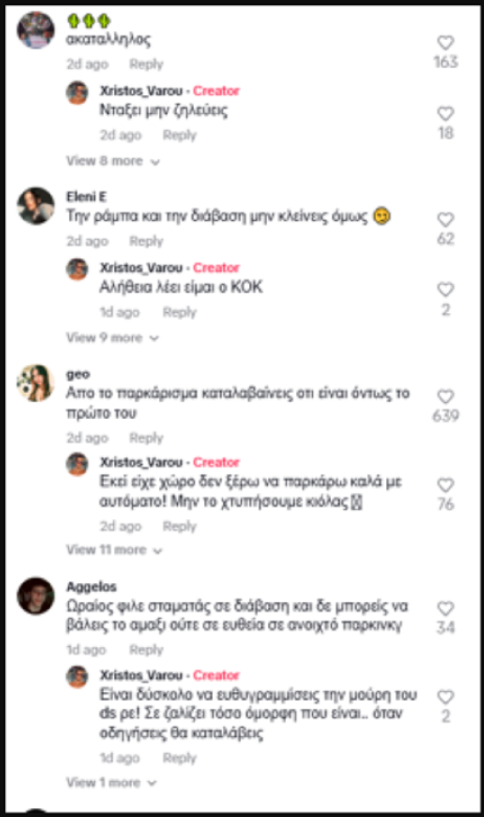 Σε ανάρτηση που έκανε στο TikTok δημοσίευσε μια φωτογραφία με το νέο ακριβό αυτοκίνητό του, με τούς χρήστες να γίνονται έξαλλοι και να επισημαίνουν τις παραβάσεις του.