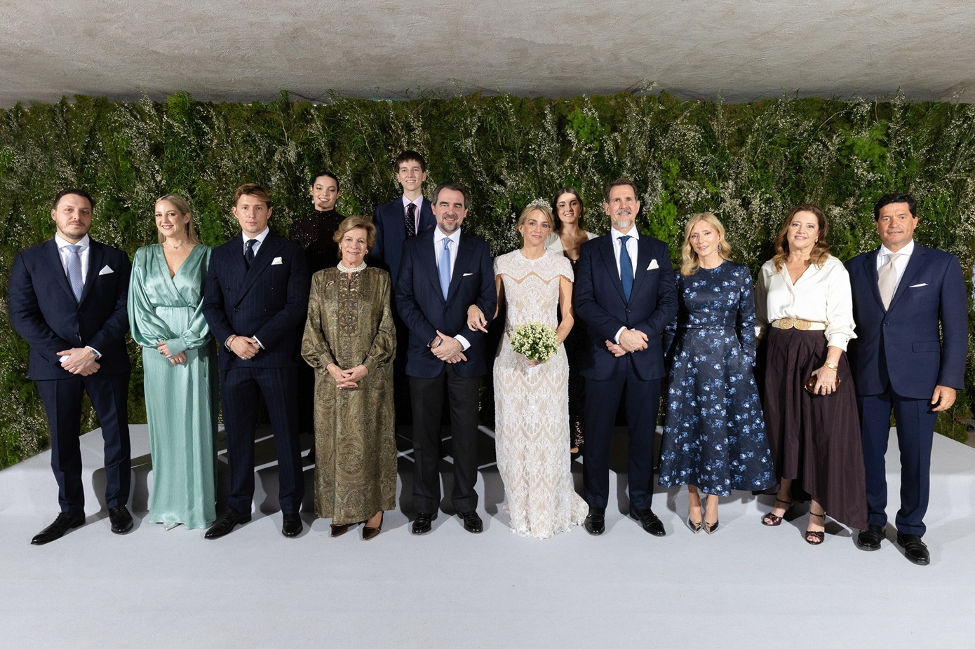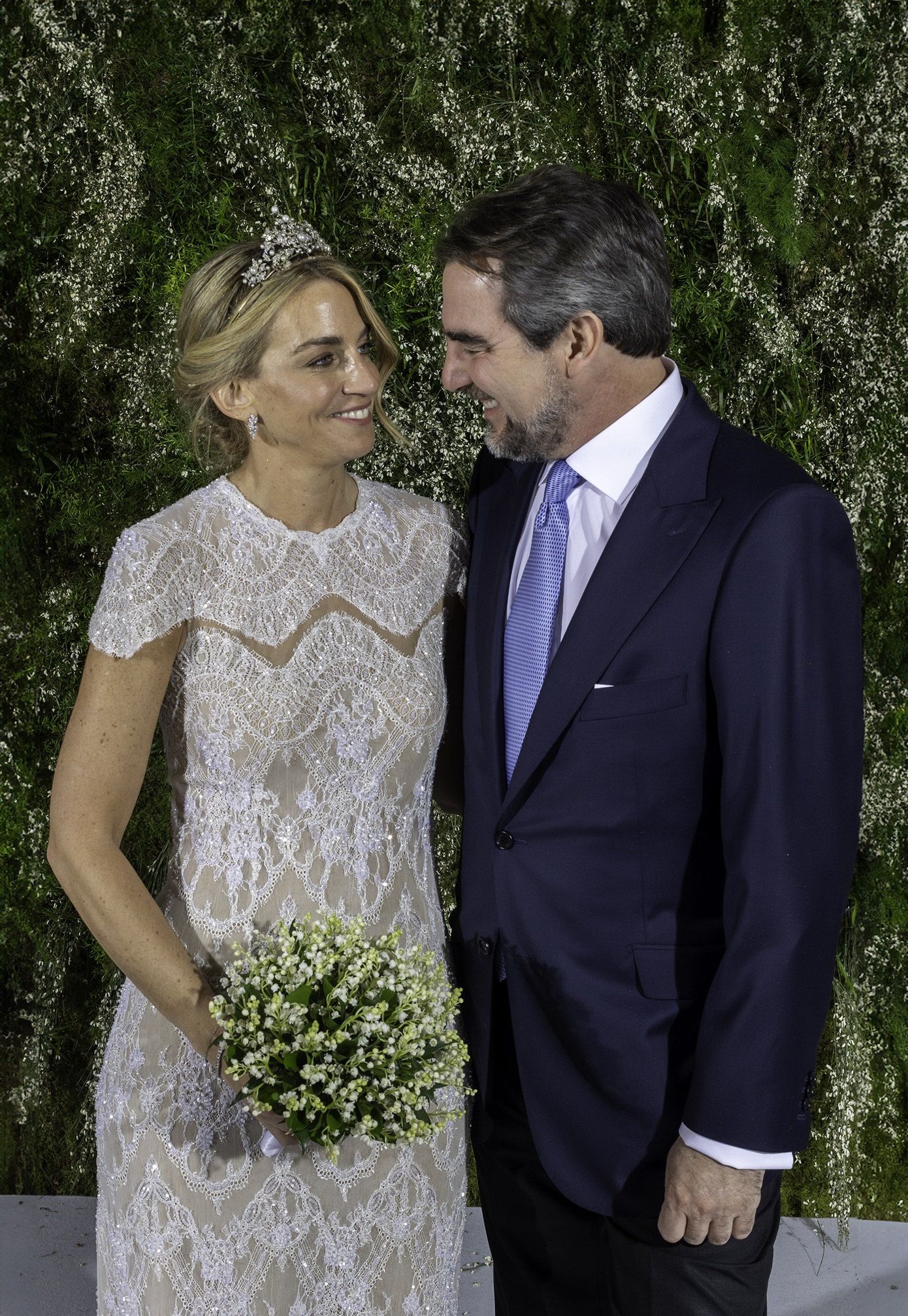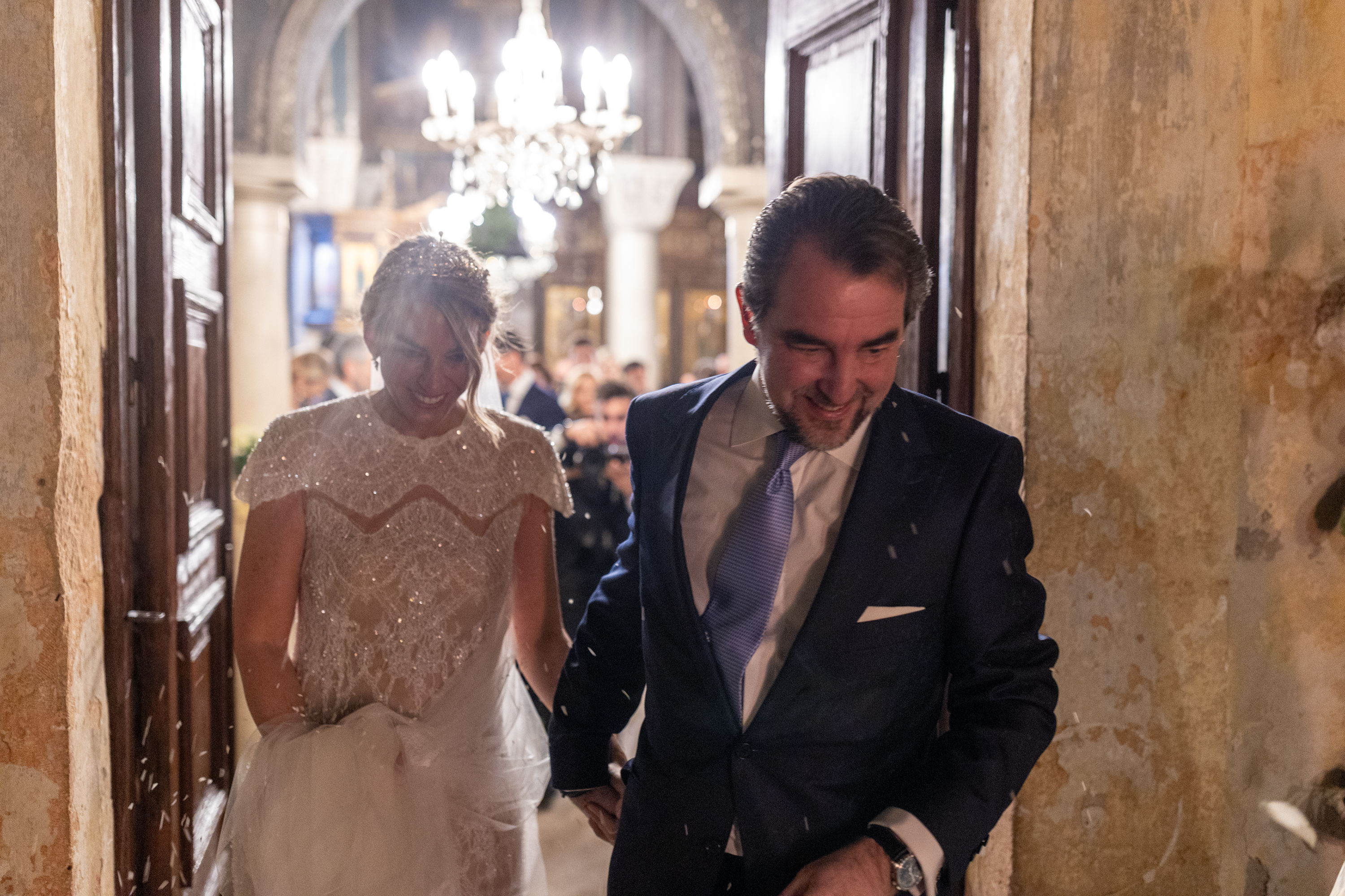 Το ζευγάρι γιόρτασε την ένωση της ζωής τους σε μια απλή τελετή με 70 καλεσμένους, με τους πιο κοντινούς τους φίλους και συγγενείς. Η Χρυσή ξεχώρισε με το κομψό και εφαρμοστό νυφικό της φόρεμα και την Antique Corsage Tiara που ανήκε στην πρώην βασίλισσα Άννα-Μαρία.