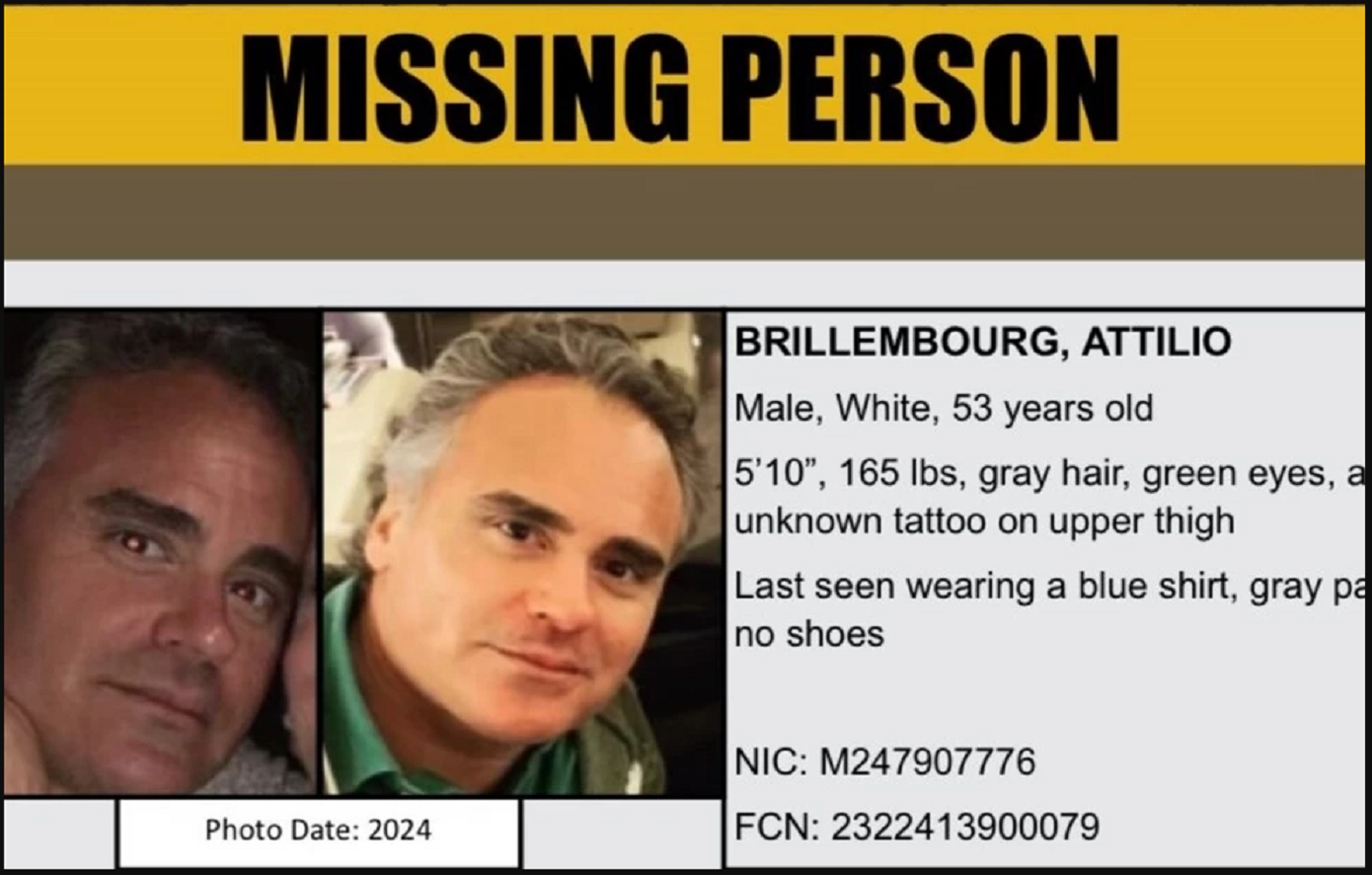 Οι αμερικανικές αρχές ανέφεραν ότι ο Ατίλιο Μπρίλεμπουργκ είναι λευκός, ύψους 1,78 μ. και βάρους 75 κιλών, με γκρίζα μαλλιά, πράσινα μάτια και ένα τατουάζ στο πάνω μέρος του μηρού του.