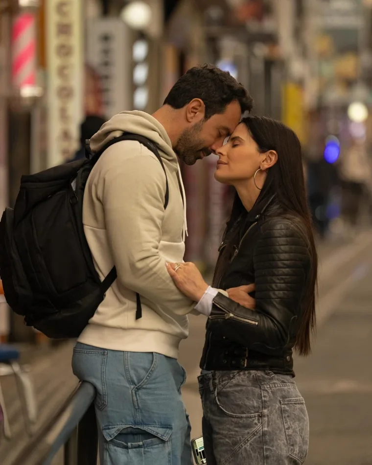Το ζευγάρι, που βρέθηκε εκεί για τα γυρίσματα της εκπομπής Reunion, πόζαρε αγκαλιά σε έναν γραφικό δρόμο, με τα πρόσωπά τους να ακουμπάνε τρυφερά.