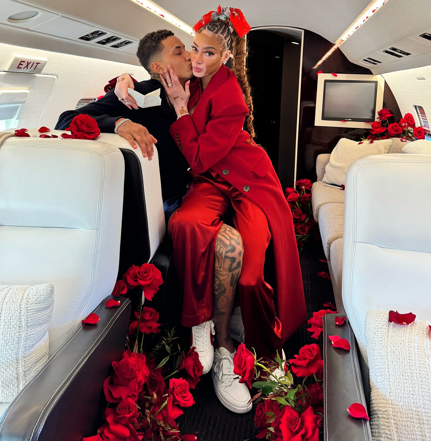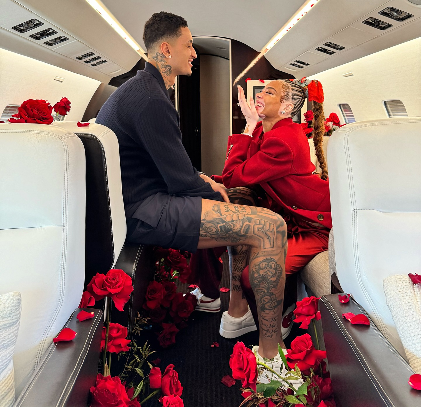 Κατά τη διάρκεια της πτήσης, ο Κούζμα διάβασε ένα ποίημα που είχε γράψει για το διάσημο μοντέλο. «Για ένα κλάσμα του δευτερολέπτου σκέφτηκα, “αυτό θα ήταν τόσο ρομαντικό αν ήταν πρόταση γάμου”» εξομολογήθηκε στο περιοδικό. «Αλλά δεν ήθελα να χαλάσω την έκπληξη, οπότε απλώς το άφησα να περάσει», συμπλήρωσε η Χάρλοου.