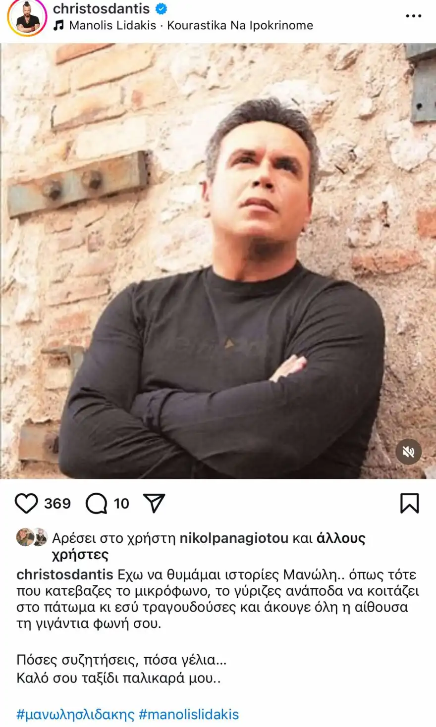 Ο Χρήστος Δάντης με ανάρτησή του απαίτησε φόρο τιμής στον Μανώλη Λιδάκη, ενώ τα λόγια του συνόδευσε το τραγούδι «Κουράστηκα να υποκρίνομαι».