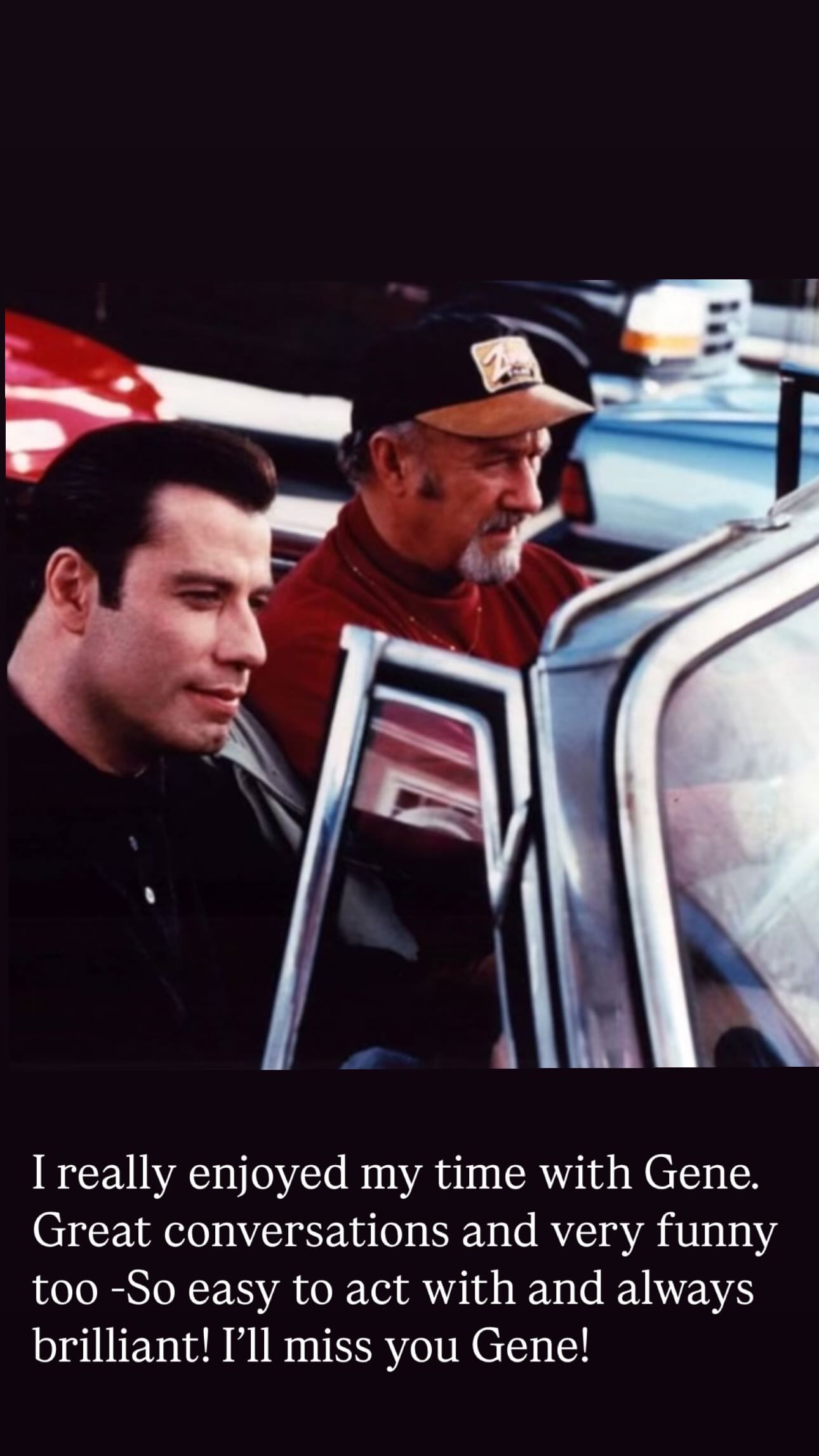 «Πραγματικά απόλαυσα τον χρόνο μου με τον Τζιν. Είχαμε σπουδαίες συζητήσεις και ήταν και πολύ αστείος. Ήταν τόσο εύκολο να παίζεις μαζί του και πάντα λαμπρός. Θα μου λείψεις, Τζιν» έγραψε ο Τραβόλτα.