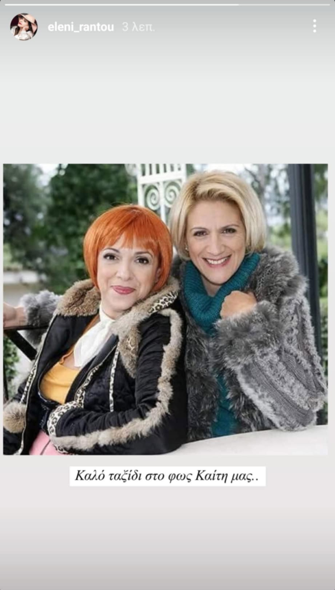 «Πόσο πρόωρος χαμός κι αυτός! Πόσο γενναία πάλεψες! Πόσο αθόρυβα υπέφερες. Respect Καίτη Κωνσταντίνου. Ήσουν πολύ πιο σπουδαία από όλους σου τους ρόλους. Θλίψη τεράστια σε όλους μας η απώλειά σου. Μας λείπεις ήδη. Καλό ταξίδι στη φωτεινή μεριά του φεγγαριού. Πόσες απώλειες πια θα θρηνήσουμε. Τερματίσαμε» έγραψε η Ελένη Ράντου.