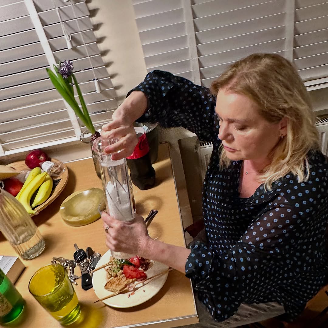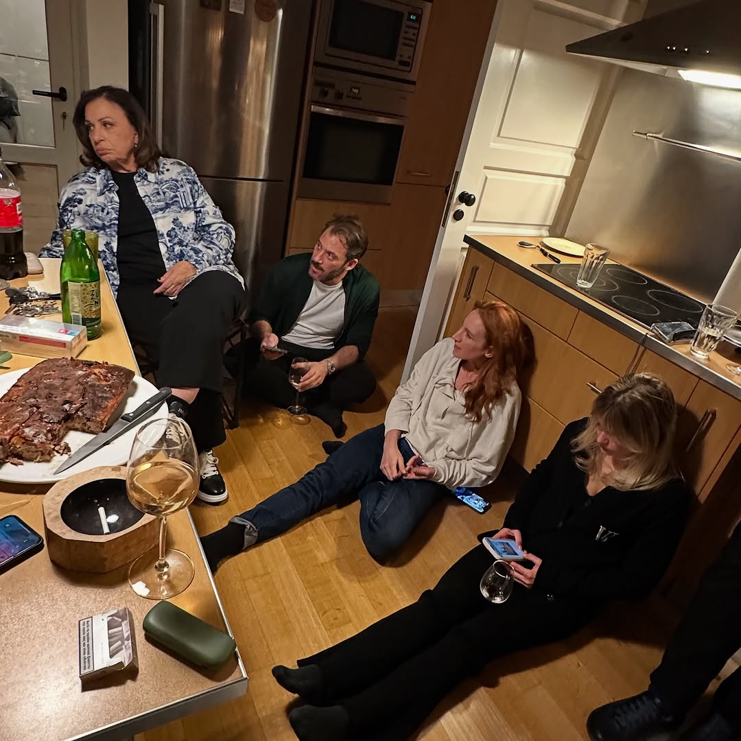 «Όταν μαζευόμαστε και η Κλέλια Ανδριολάτου επιμένει να κάτσουμε στην κουζίνα αλλά δεν χωράμε!!!…», έγραψε ο οικοδεσπότης στη λεζάντα της ανάρτησής του.