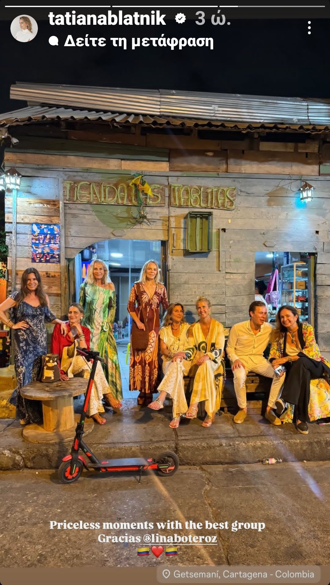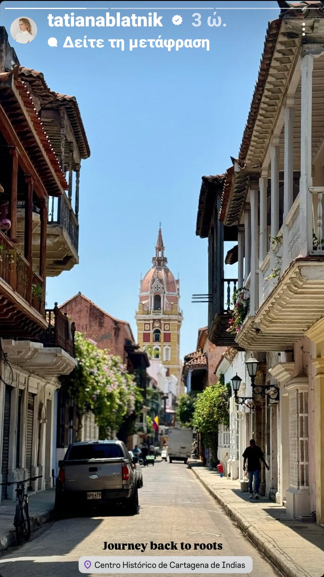 Η Τατιάνα Μπλάτνικ δημοσίευσε φωτογραφίες και βίντεο από τα τοπία της Cartagena, καθώς και από παραδόσεις και έθιμα της χώρας, σημειώνοντας πως αυτό είναι είναι ένα ταξίδι στις ρίζες της.