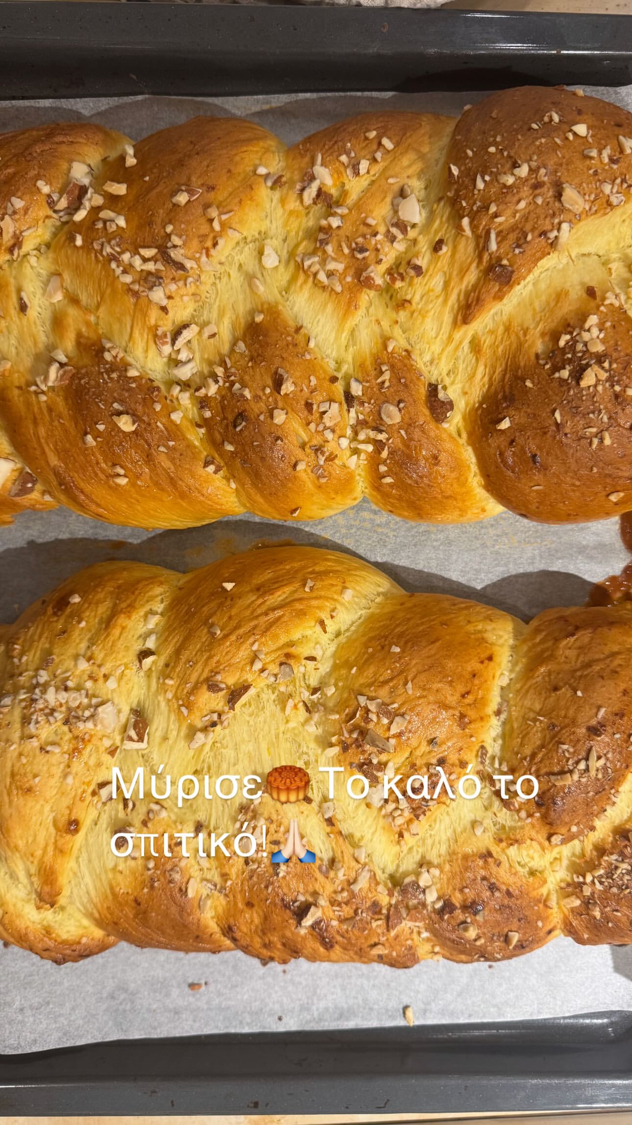 Η γνωστή παρουσιάστρια μοιράστηκε με τους διαδικτυακούς της φίλους μια φωτογραφία με δύο λαχταριστά τσουρέκια, φρεσκοψημένα και πλεγμένα σε όμορφο σχήμα, πασπαλισμένα με αμύγδαλα.