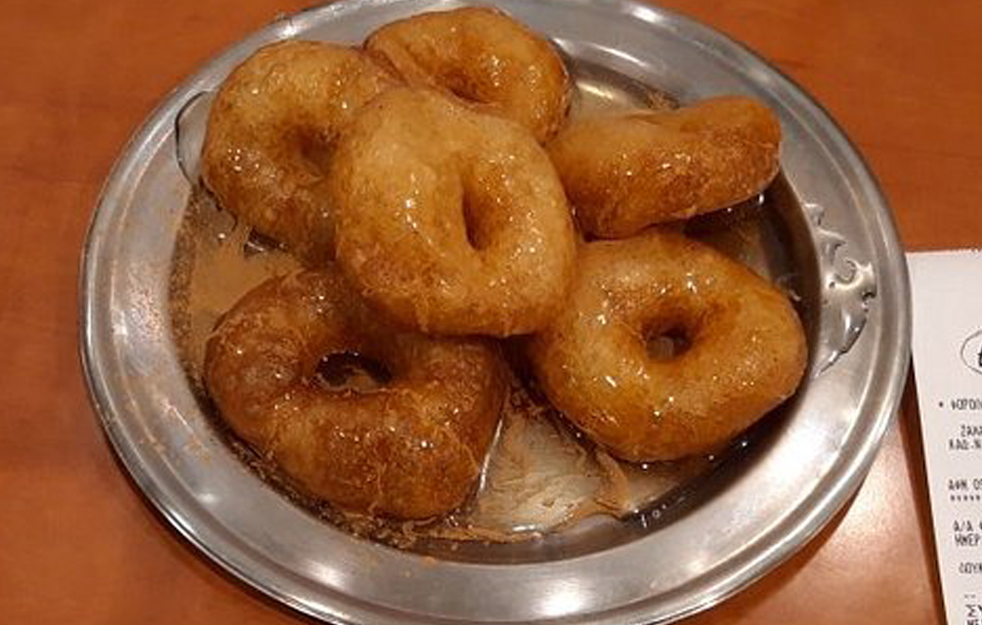 «Βρίσκομαι στο κατάστημα γύρω στις 7.30 π.μ μέχρι και τις έξι με 6.30μ.μ που κλείνουμε. Ζυμώνω το πρωί για να μπορώ να “κόψω” λουκουμάδες στις εννέα, και στη συνέχεια κάνω ό,τι άλλες δουλειές χρειαστεί στην κουζίνα . Ετοιμάζω τη μαγιά στις καραβάνες για να είναι έτοιμες ώστε μετά να ζυμώσω με αλεύρι και να προχωρήσω στη συνέχεια με το τηγάνισμα γιατί οι λουκουμάδες πρέπει να σερβίρονται φρέσκοι στον πελάτη. Ασχολούμαι και με την παρασκευή των υπολοίπων προϊόντων, με τις σφολιάτες για τις τυρόπιτες, τις μπουγάτσες, τις κασερόπιτες, τις πίτες με μήλο, ζαμπόν και σπανάκι και φυσικά την πίτσα που σερβίρουμε. Για να είναι όλα έτοιμα προκειμένου να παίρνουμε και να ψήνουμε ανάλογα και με την κατανάλωση. Ωστόσο στα ψυγεία οι παρτίδες είναι λίγες κάθε φορά, καθώς θέλουμε τα προϊόντα να είναι όσο το δυνατόν και πιο φρέσκα».
