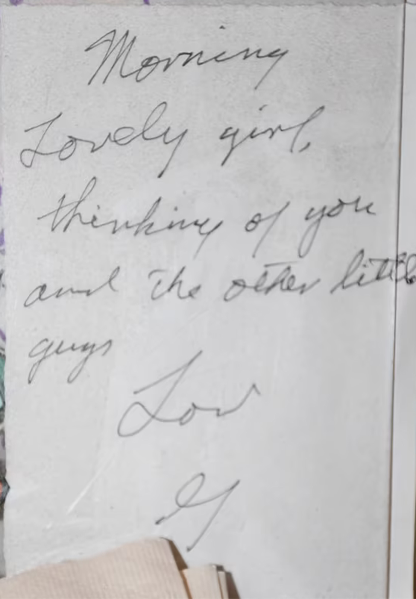 Στα σημειώματα, ο ηθοποιός αποκαλεί τη σύζυγό του «όμορφο κορίτσι», και σχεδόν πάντα τα υπογράφει με τη φράση «Με αγάπη, Γ.».