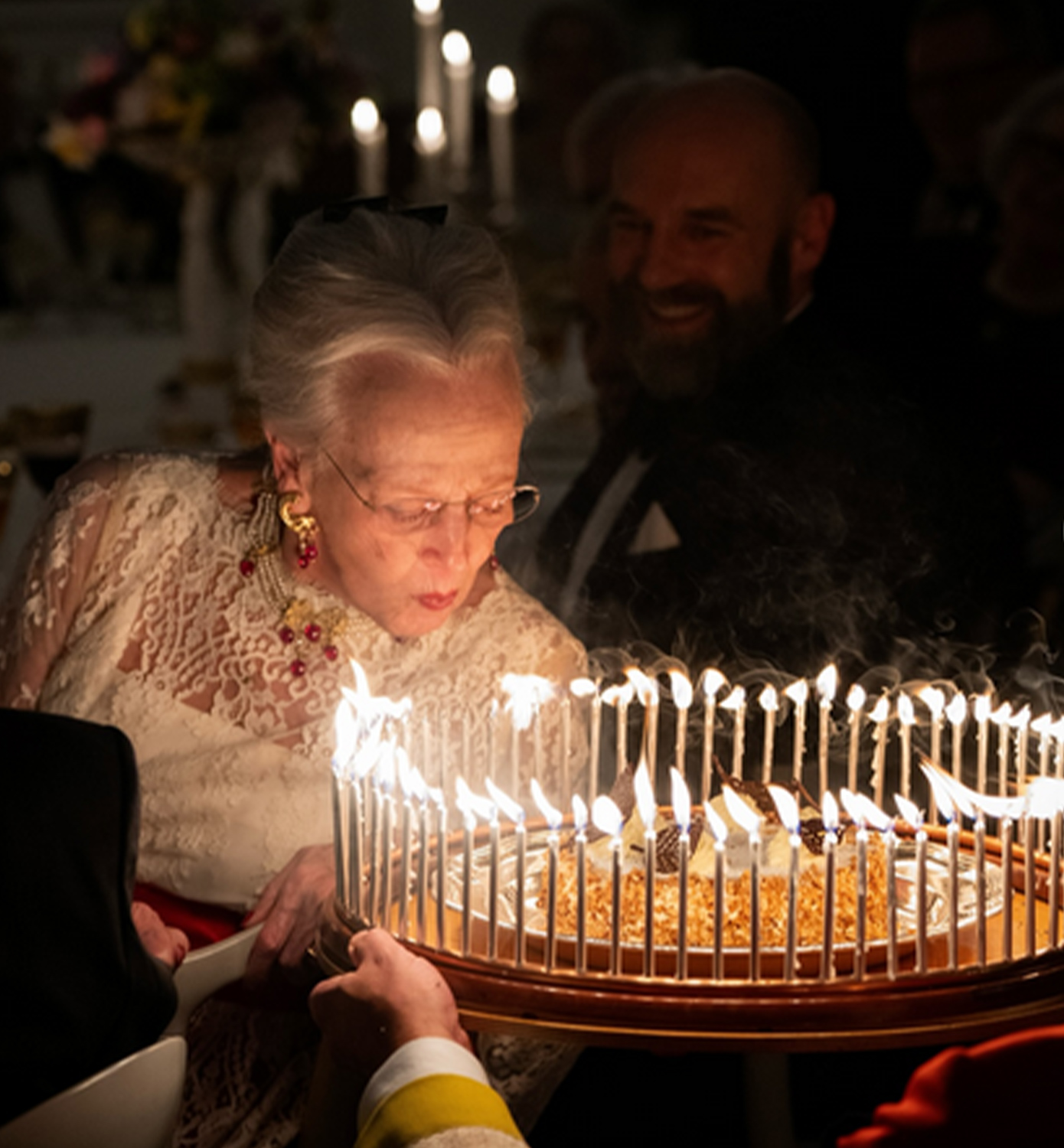 Η Μαργαρίτα κατά την διάρκεια του επίσημου δείπνου στην Αίθουσα του Θόλου, έσβησε τα κεριά που είχαν τοποθετηθεί περιμετρικά μιας τούρτας.