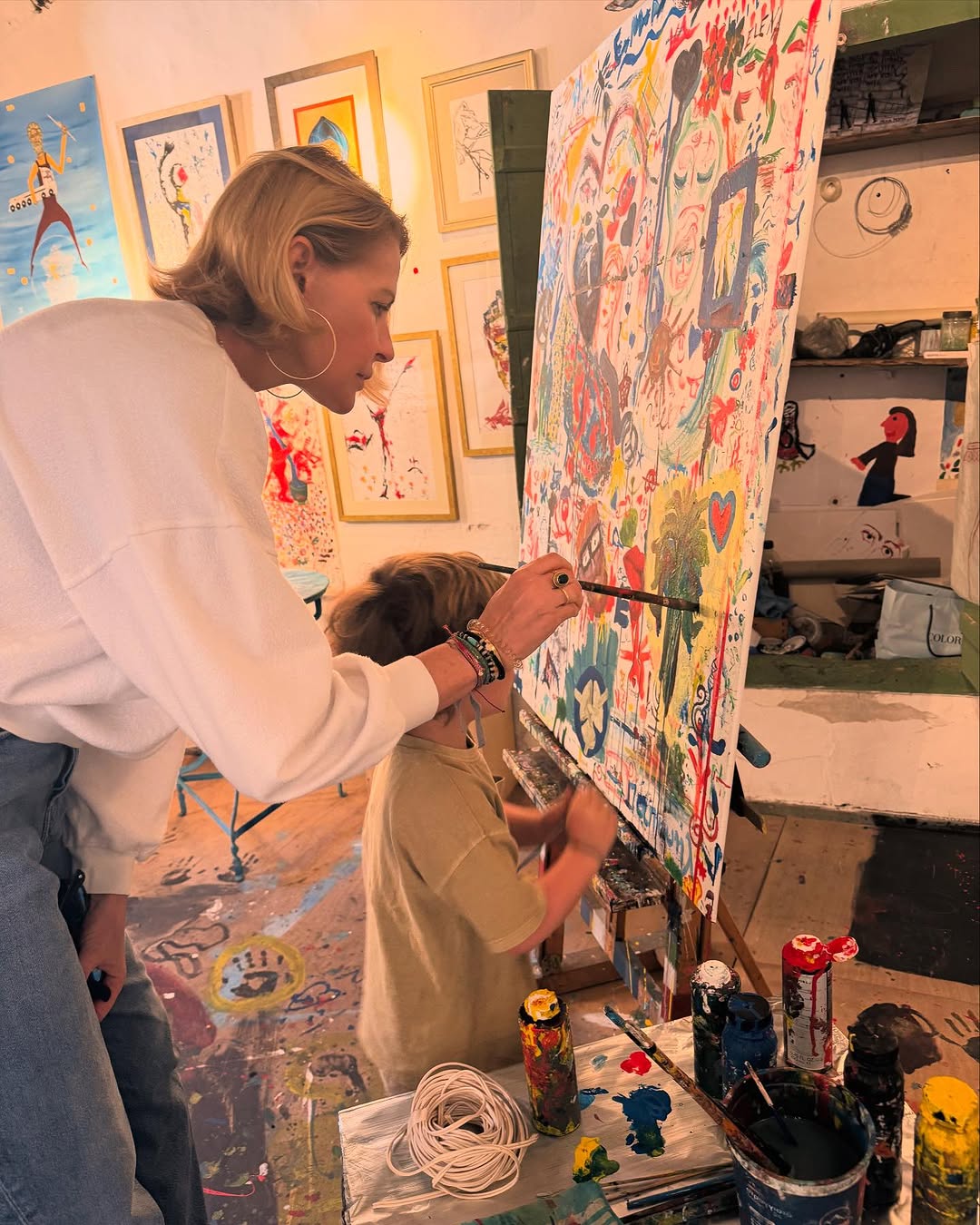 Μέσα σε ένα πολύχρωμο σκηνικό, μαμά και γιος αφέθηκαν στη μαγεία της ζωγραφικής. Με πινέλα και ζωηρά χρώματα, δημιούργησαν μαζί καλλιτεχνικά έργα, αποτυπώνοντας χαρούμενες στιγμές.