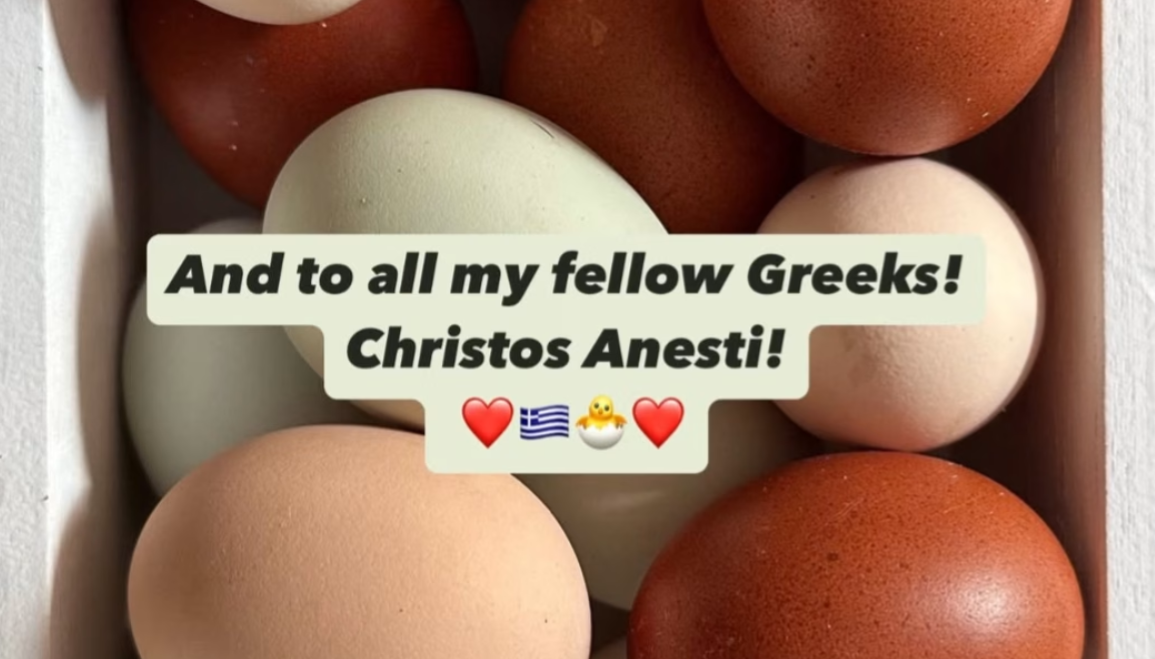 Η Τζένιφερ Άνιστον επέλεξε μια πιο διακριτική αλλά εξίσου τρυφερή ανάρτηση: ένα καλαθάκι με πασχαλινά αυγά, συνοδευόμενο από τις ευχές της «και σε όλους τους Έλληνες συμπατριώτες μου! Christos Anesti!».