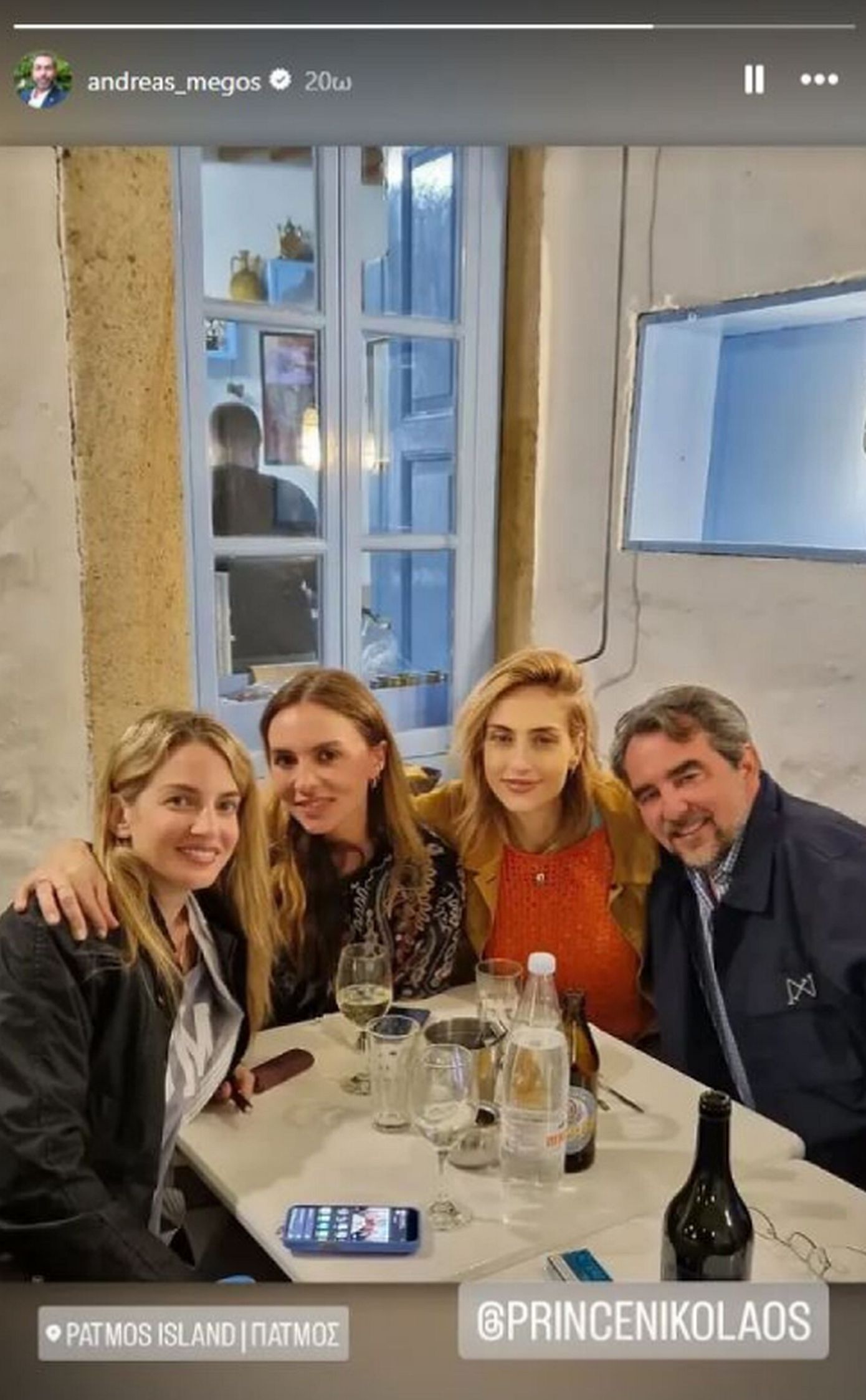 Ο συγγραφέας Ανδρέας Μέγκος μοιράστηκε στις 26 Απριλίου στον προσωπικό του λογαριασμό στο Instagram ένα στιγμιότυπο του Νικόλαου Ντε Γκρες και της Χρυσής Βαρδινογιάννη, οι οποίοι δείπνησαν κατά την παραμονή τους στην Πάτμο σε εστιατόριο στη Χώρα του νησιού, μαζί με φίλους τους, ενώ μερικές ημέρες πριν είχε δημοσιεύσει βίντεο από την αναστάσιμη λειτουργία στο γυναικείο μοναστήρι του Ευαγγελισμού, την οποία παρακολούθησαν.