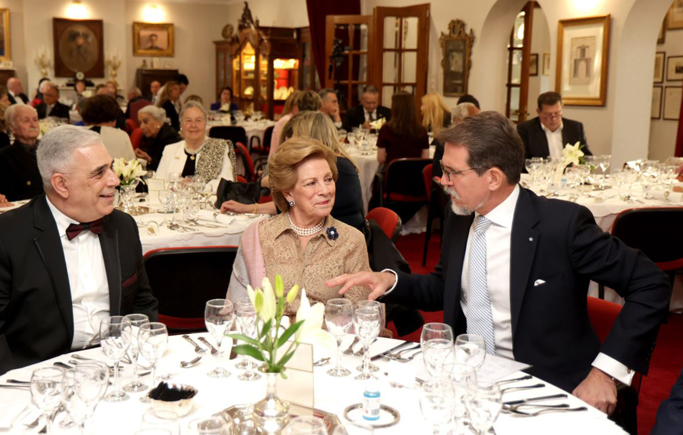 Κατά τη διάρκεια της εκδήλωσης στον ιστορικό σύλλογο, η τέως βασίλισσα Άννα Μαρία, πλαισιωμένη από τους γιους της και μέλη του Συλλόγου, Παύλο και Νικόλαο Ντε Γκρες, απένειμε τα Χρυσά Μετάλλια του Συλλόγου σε τρεις εξέχουσες προσωπικότητες: την Άσπα Ζαΐμη, τον Ναπολέοντα Νέζερ και τον Ιωάννη Οικονομάκη.