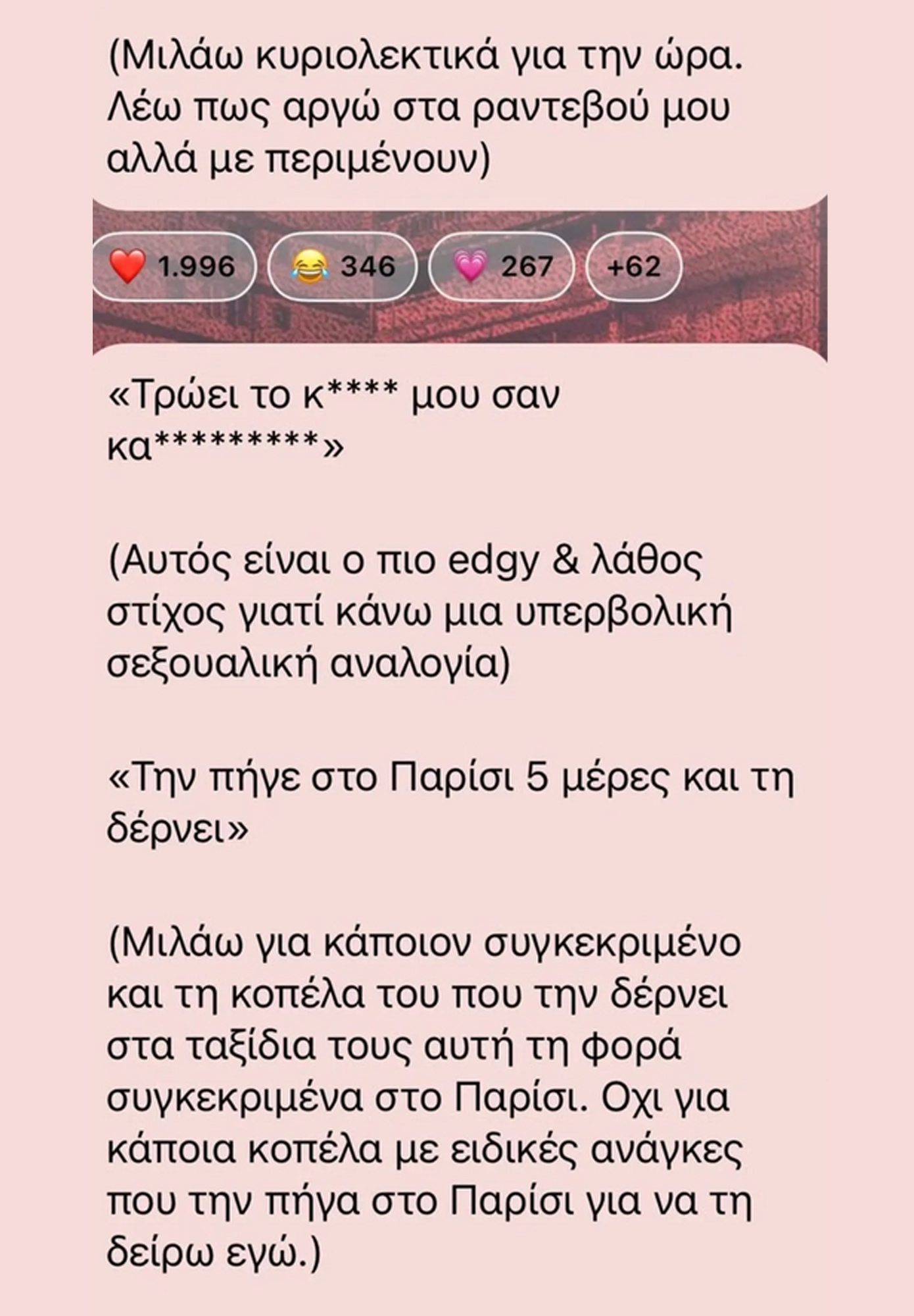 Στη συνέχει αναλύει τους στίχους του για όσους… δεν κατάλαβαν και βιάστηκαν να τον κρίνουν.