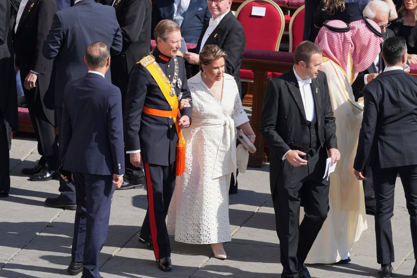 Τελευταία, αλλά καθόλου απαρατήρητη, η μεγάλη δούκισσα του Λουξεμβούργου Maria Teresa, επέλεξε ένα μάξι λευκό φόρεμα με διακόσμηση από μαργαριτάρια στη λαιμόκοψη και αντίστοιχα μαργαριταρένια σκουλαρίκια.