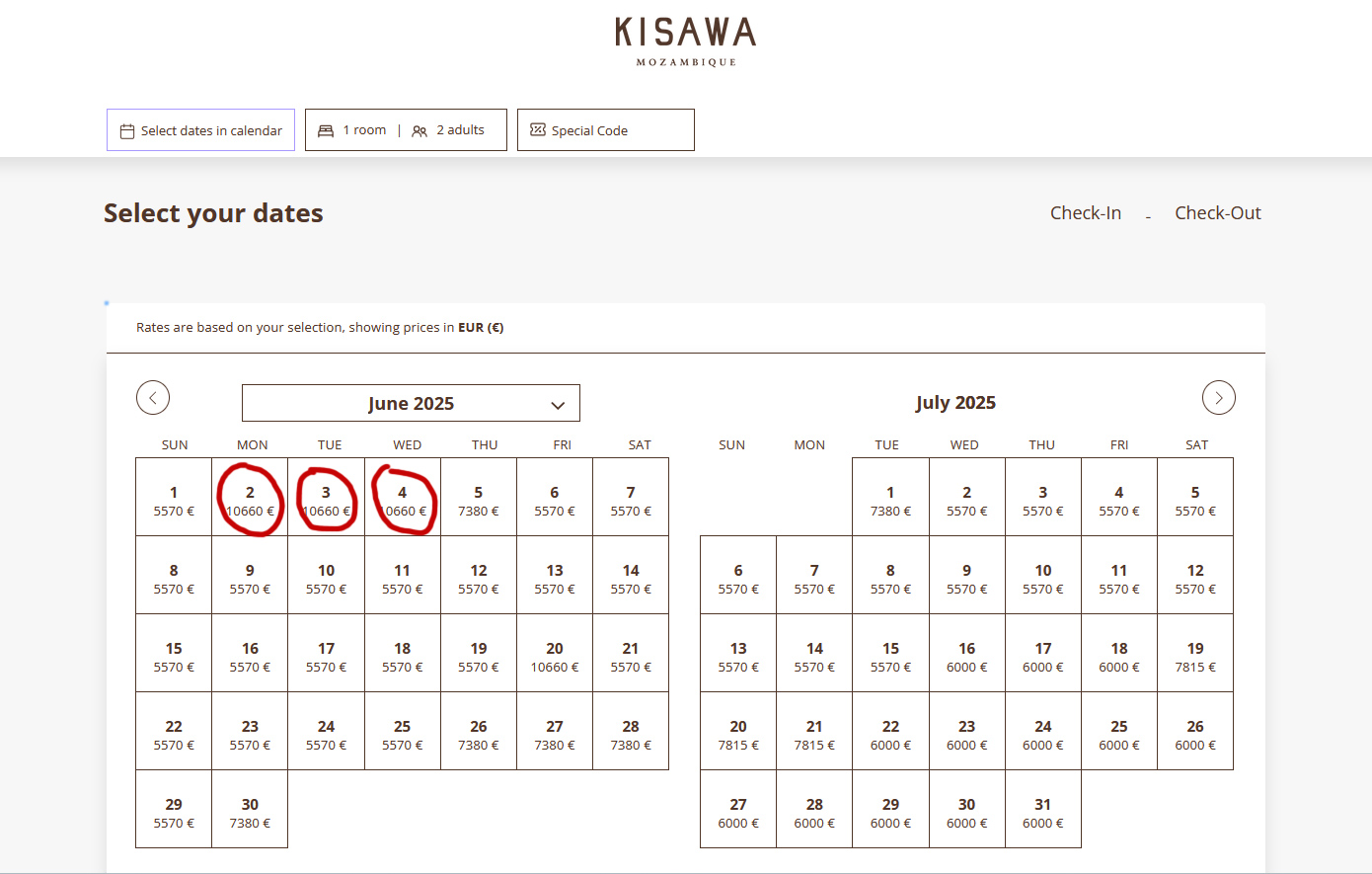 Όπως φαίνεται στην επίσημη ιστοσελίδα του ξενοδοχείου οι τιμές για ημερήσια διαμονή στο ξενοδοχείο ξεκινούν από 6.000 ευρώ και μπορεί να φτάσει μέχρι και τις 11.000 ευρώ την βραδιά.