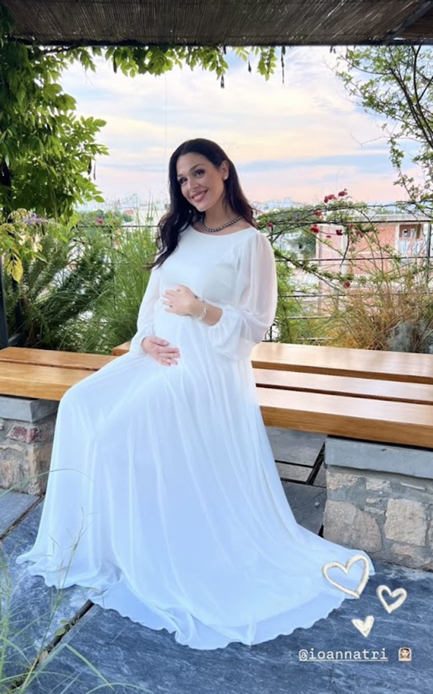 Η δημοσιευμένη εικόνα απεικονίζει την Ιωάννα Τριανταφυλλίδου ως νύφη, φορώντας ένα κομψό, λευκό νυφικό. Ποζάρει χαμογελαστή, αγγίζοντας την φουσκωμένη κοιλιά της, με φόντο ένα ειδυλλιακό ηλιοβασίλεμα. Η Melia Kreiling συνόδευσε τη φωτογραφία με λευκές καρδιές και ένα emoji νύφης, χωρίς ωστόσο να δώσει περισσότερες λεπτομέρειες για την τελετή.