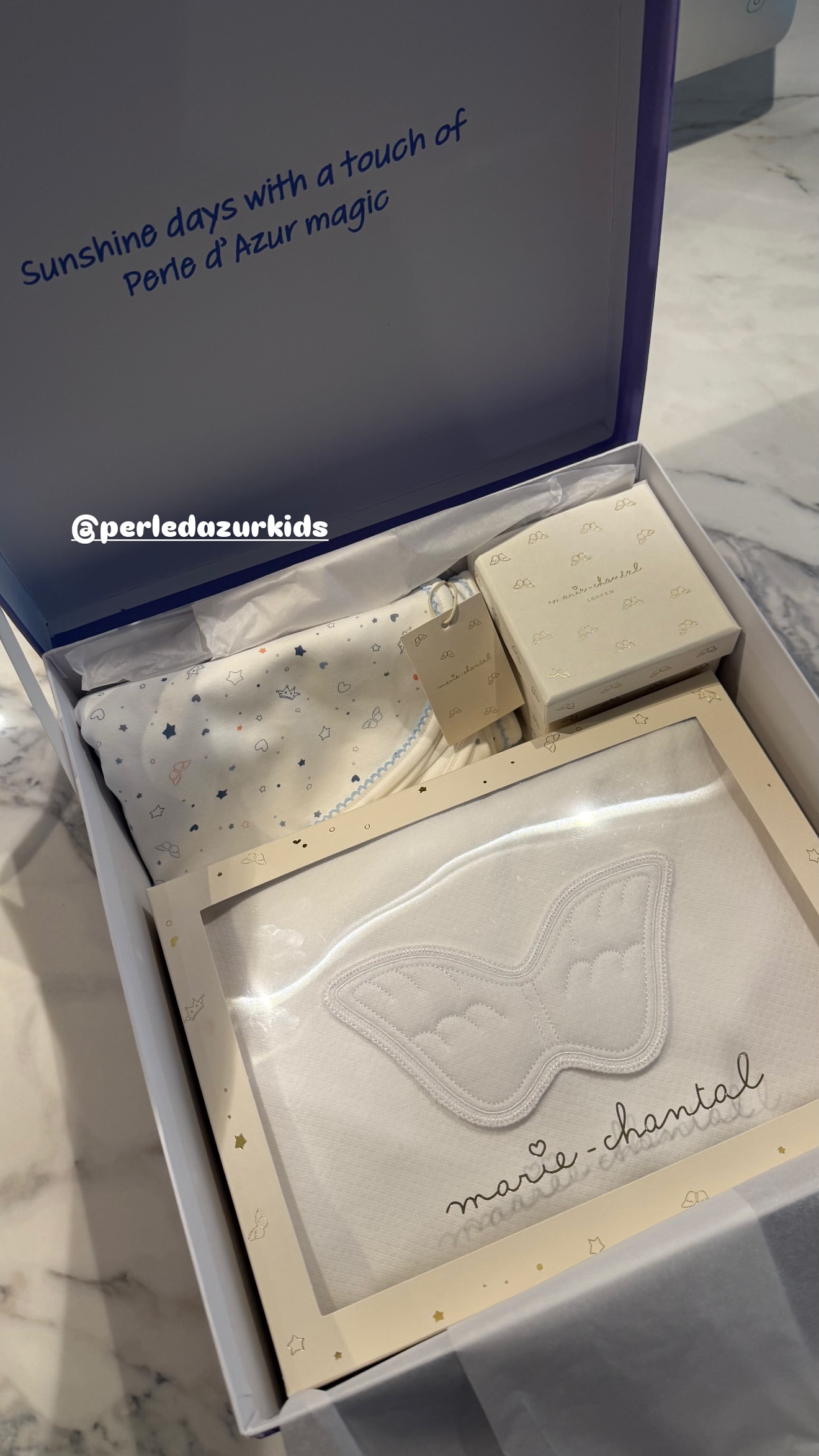Τα συγκεκριμένα ενδύματα φέρουν την υπογραφή της Μαρί Σαντάλ, καθώς ανήκουν στο εξαιρετικά επιτυχημένο brand παιδικών ρούχων και πιτζαμών της συζύγου του Παύλου Ντε Γκρες.