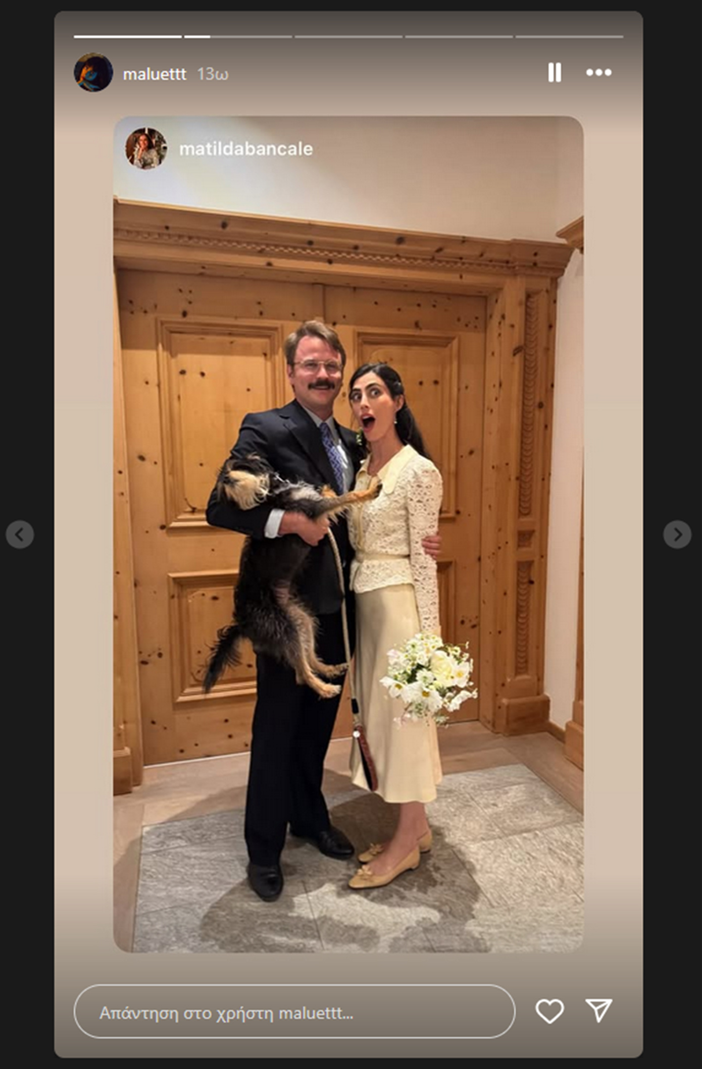 Ο 36χρονος Νικόλας Νιάρχος φόρεσε μπλε κοστούμι, ενώ η Ιταλίδα καλλιτέχνιδα και εικαστικός επέλεξε ένα ρομαντικό λευκό σύνολο με δαντελένιες λεπτομέρειες και κρατούσε μια ανθοδέσμη από λευκά και κίτρινα λουλούδια. Στο πλευρό τους και ο αγαπημένος τους σκύλος, που συμμετείχε και εκείνος στις φωτογραφίες της ξεχωριστής ημέρας.