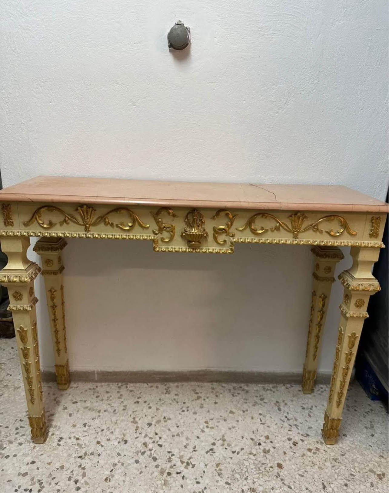 Πρόκειται για μια αντικέ κονσόλα με καθρέπτη που πιθανότατα υπήρχε στην είσοδο του διαμερίσματος της Αλίκης Βουγιουκλάκη η οποία διατηρήθηκε σε καλή κατάσταση και σήμερα ψάχνει το νέο της αγοραστή.