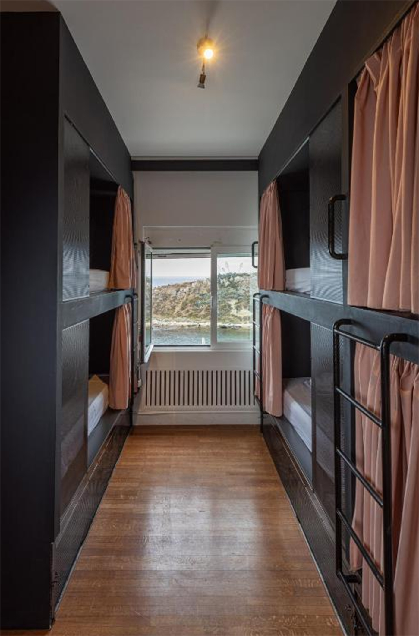 Οι κατηγορίες των δωματίων διαφέρουν, αφού υπάρχουν κρεβάτια προς διανυκτέρευση σε Κοιτώνα Αρρένων, τετράκλινο δωμάτιο με θέα στη θάλασσα, κρεβάτι σε κοιτώνα γυναικών, δίκλινο δωμάτιο με επιλογή σε κρεβάτι, economy τετράκλινο δωμάτιο, οικογενειακό δωμάτιο με ιδιωτικό μπάνιο αλλά και κρεβάτι σε μεικτό κοιτώνα.