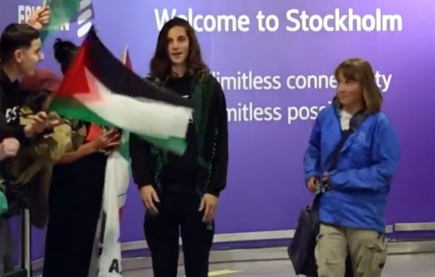 Όταν η Γκρέτα έφτασε τελικά στη Στοκχόλμη, ο Κρις, φορώντας μια πράσινη παλαιστινιακή κεφίγια στους ώμους, έτρεξε να την αγκαλιάσει θερμά μόλις εμφανίστηκε στην αίθουσα αφίξεων του αεροδρομίου Arlanda.