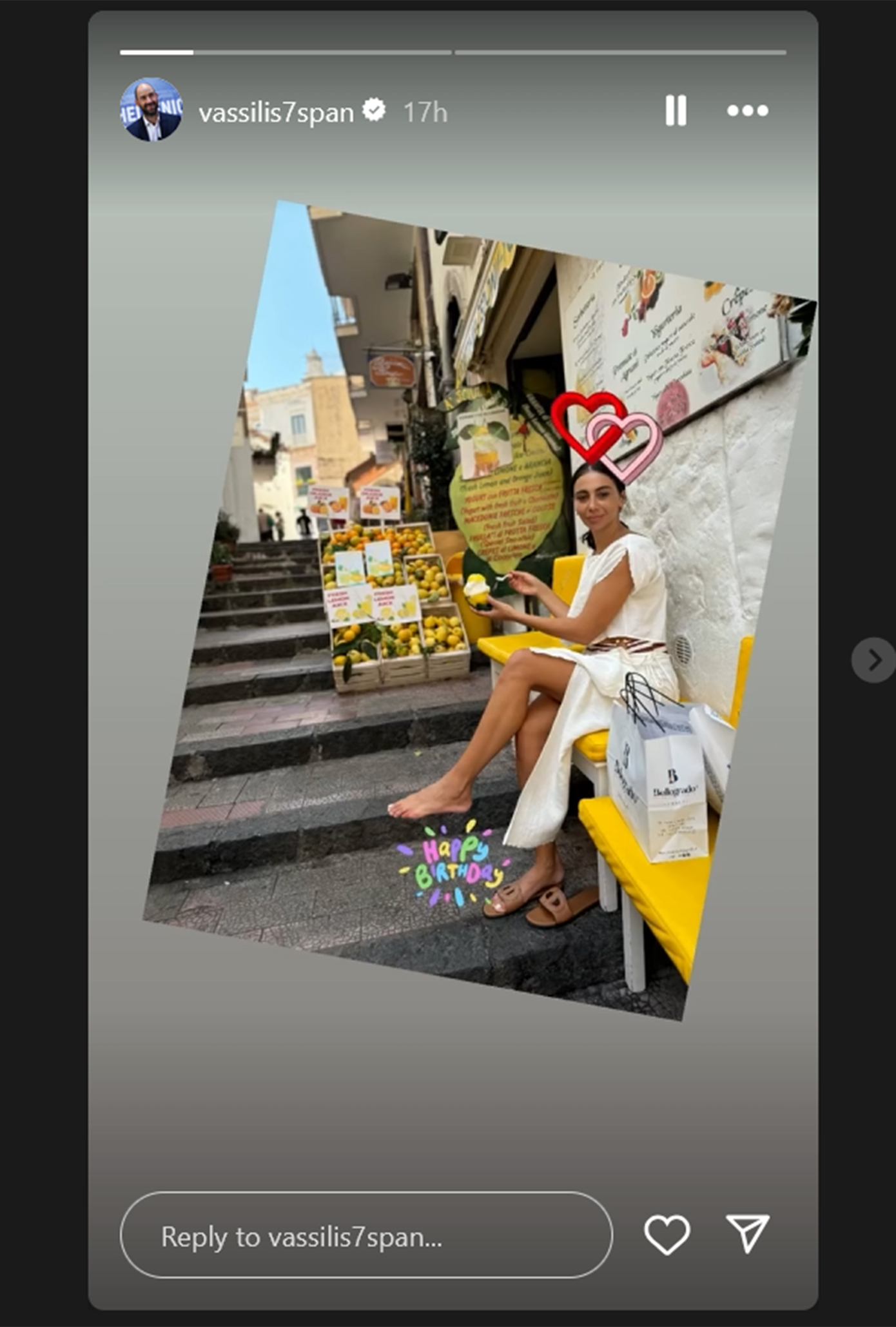 Το ζευγάρι είναι παντρεμένο από τον Ιούνιο του 2011 και έχει δημιουργήσει μια όμορφη οικογένεια. Ο Βασίλης Σπανούλης της ευχήθηκε με δύο τρυφερές αναρτήσεις, γράφοντας στο Instagram: «Happy Birthday» και «I love you».