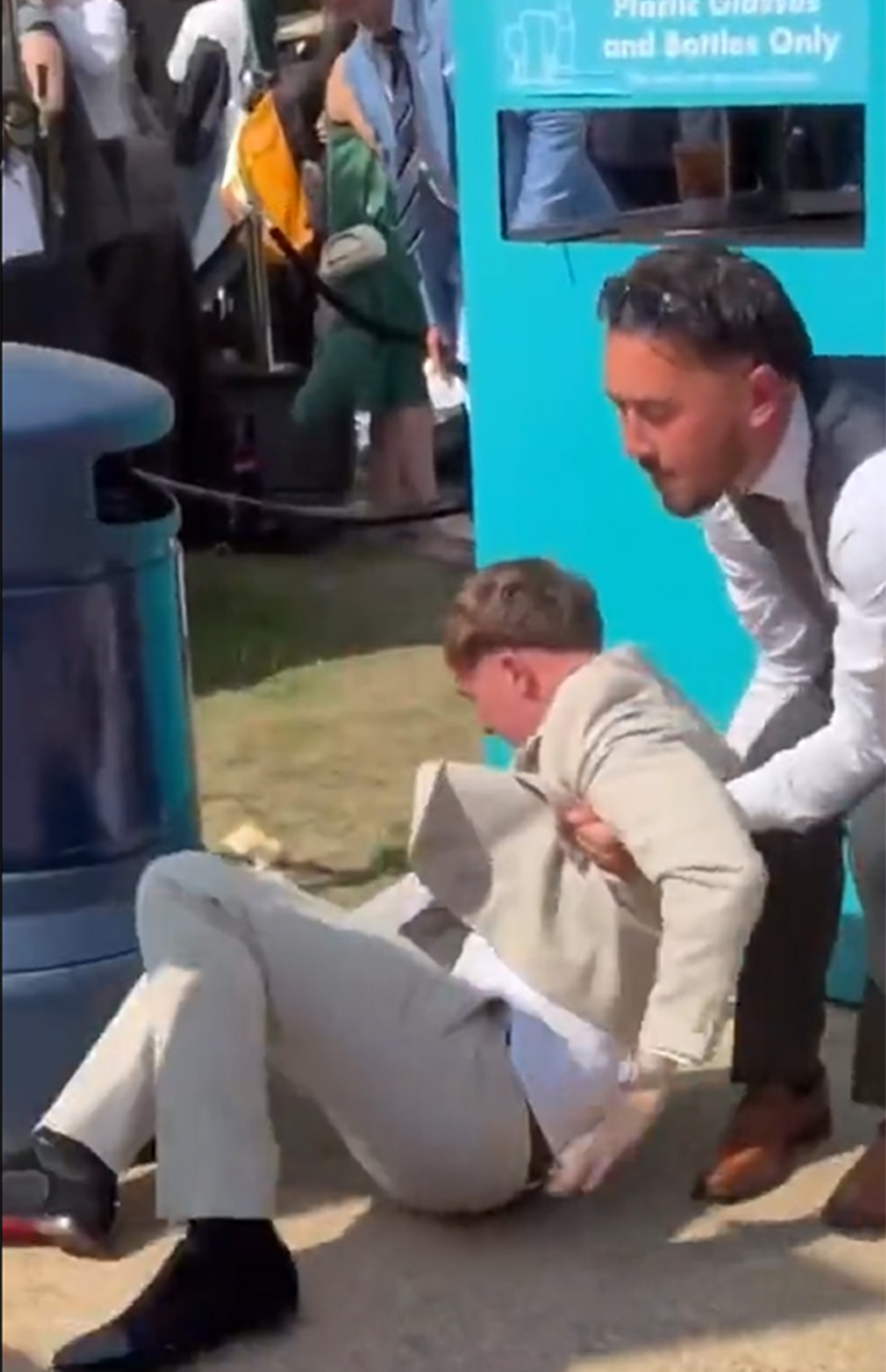 Βίντεο που δημοσίευσε η Daily Mail δείχνει δύο άνδρες με κοστούμια να εμπλέκονται σε άγρια συμπλοκή στον διάσημο ιππόδρομο του Μπερκσάιρ. Οι δύο άνδρες ανταλλάσσουν χτυπήματα για λίγα δευτερόλεπτα, προτού ο ένας καταρρεύσει στο έδαφος μετά από ένα δυνατό χτύπημα.