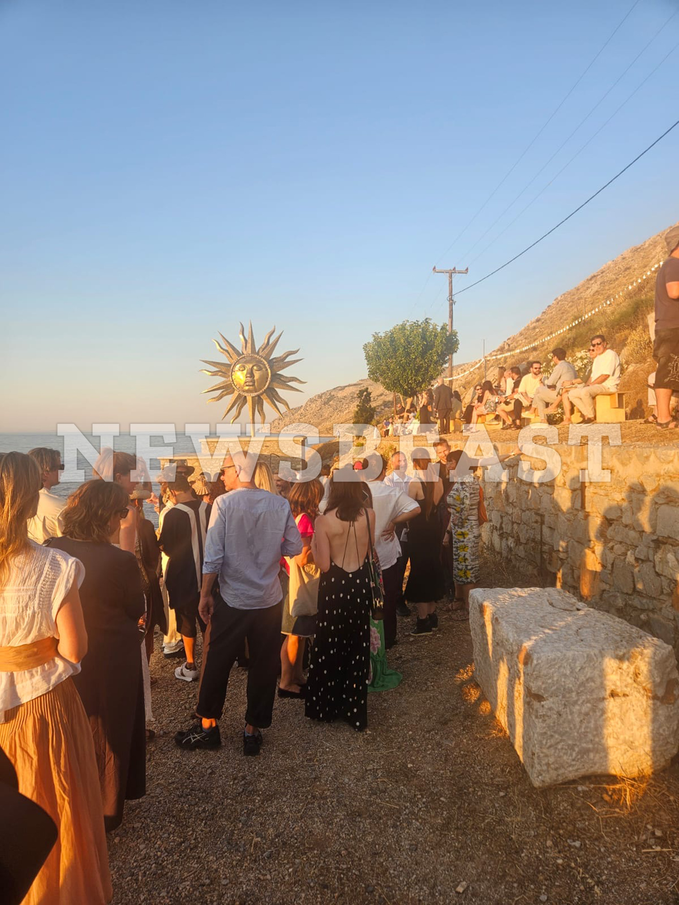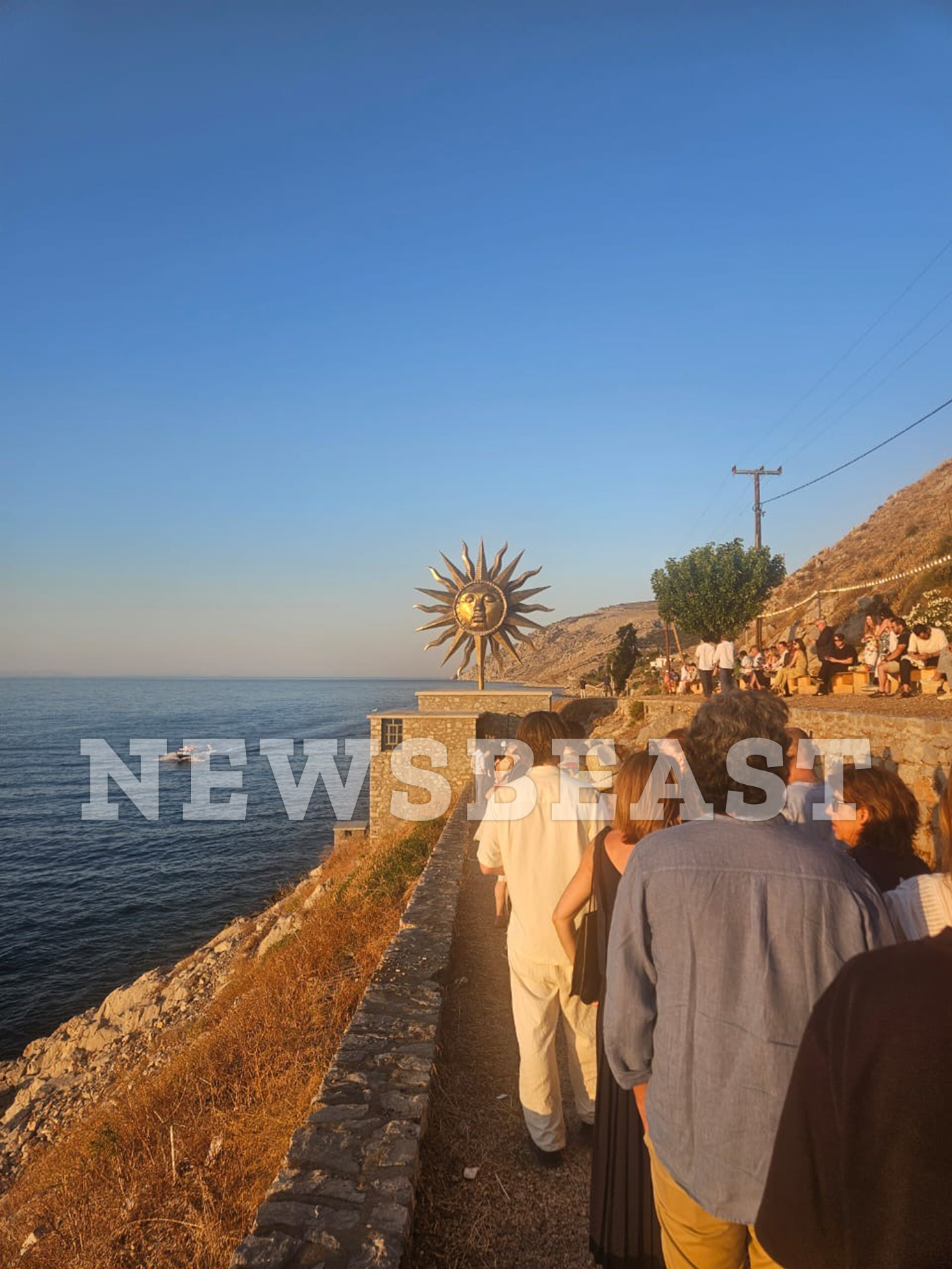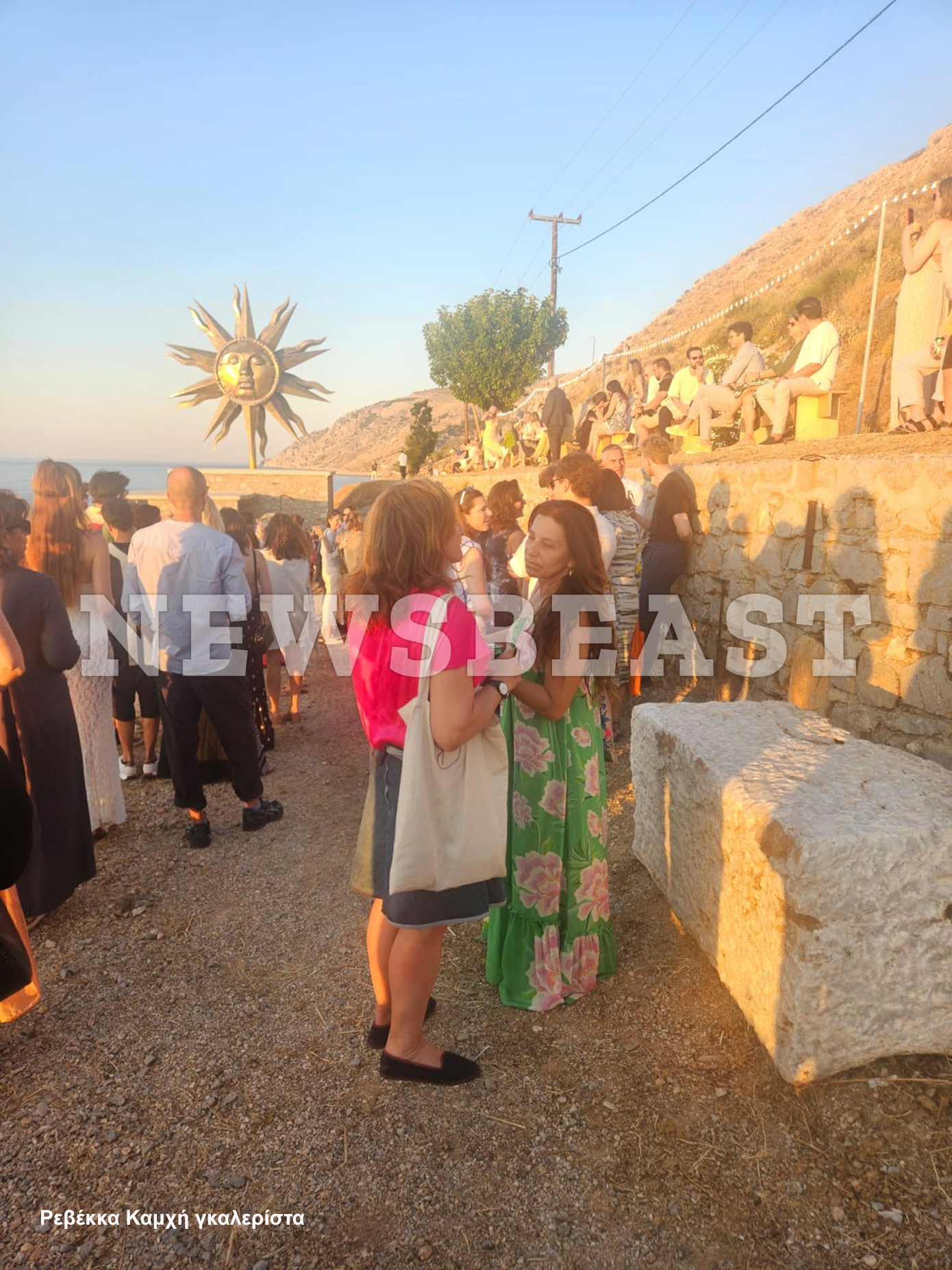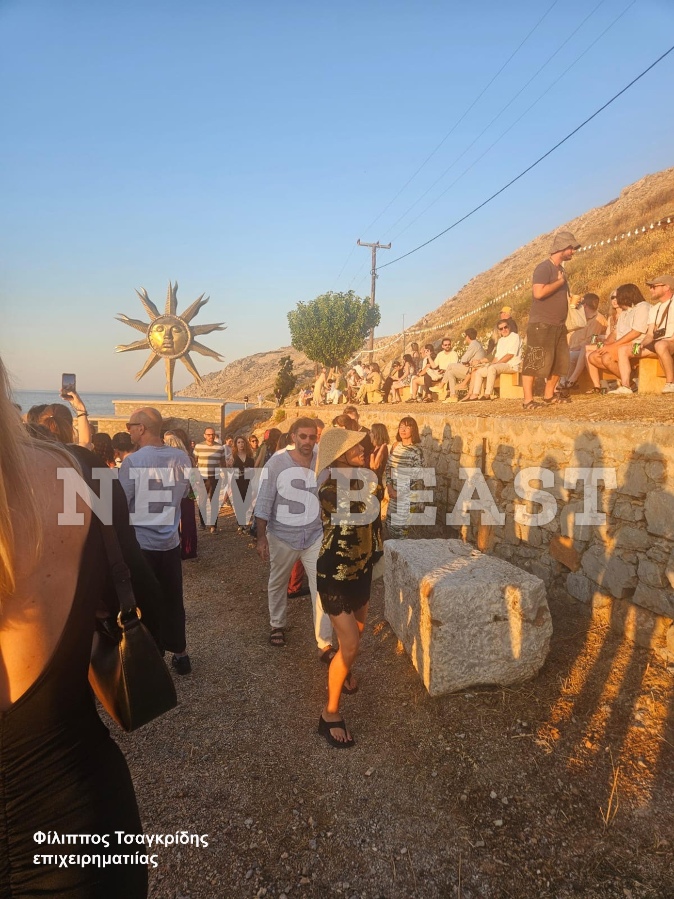 Λίγο μετά τις 20:30 μμ έφτασε στο χώρο των σφαγείων, που είχε κατακλυστεί από φιλότεχνους που είχαν έρθει στο νησί από όλο τον κόσμο, από Κορέα, Αμερική και τη γειτονική Ιταλία, η εικαστικός συνοδευόμενη από τον Δάκη Ιωάννου και εκπροσώπους της Δημοτικής Αρχής του νησιού και ξεκίνησε η «εξερεύνηση» των έργων, ενώ στον προαύλιο χώρο των σφαγείων κάτω από τον «Ήλιο» το γλυπτό του Τζέφ Κουνς, πολλοί απολάμβαναν τη θέα του απέραντου ελληνικού γαλάζιου.