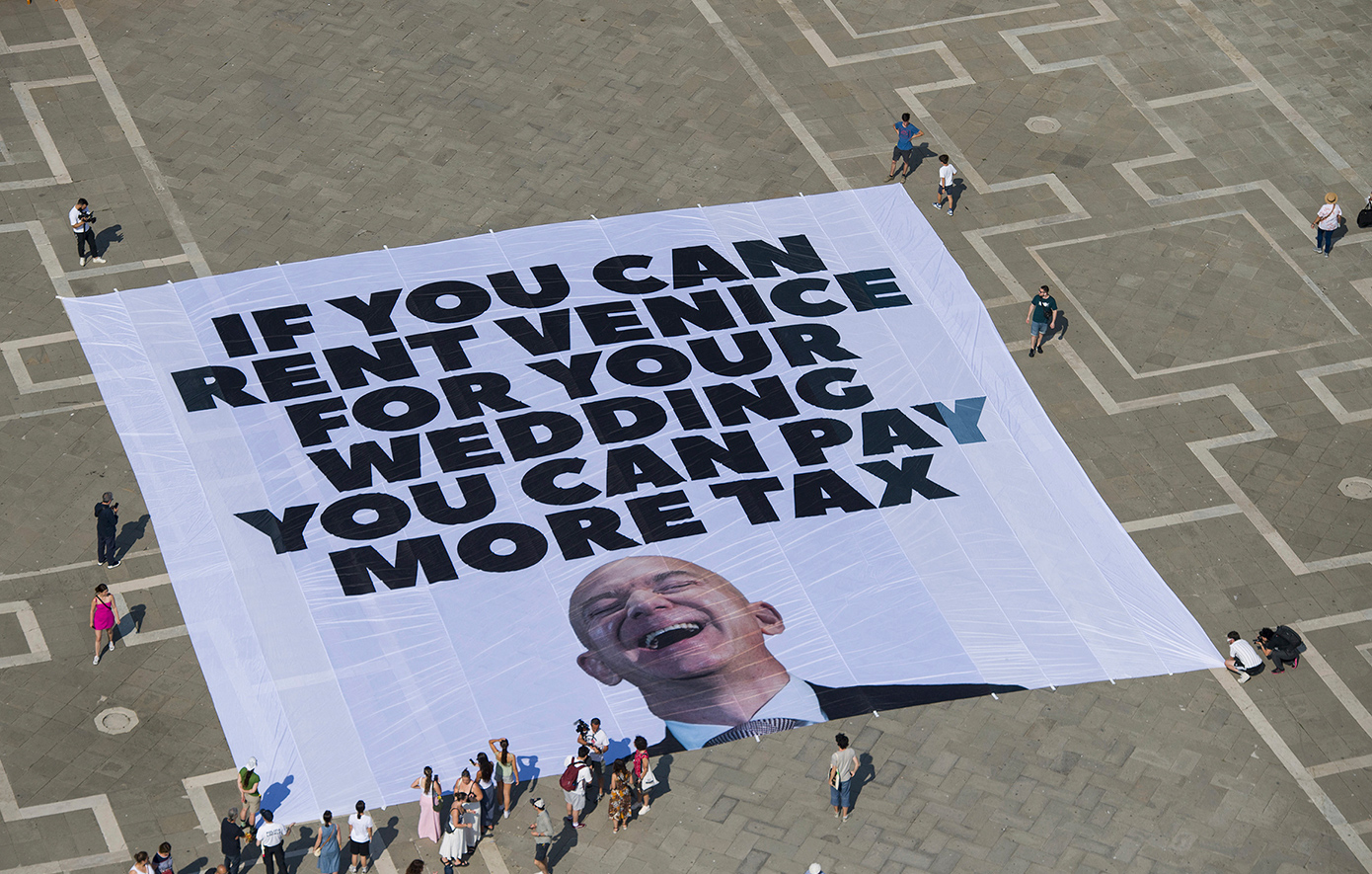«Αυτός ο γάμος προκαλεί προβλήματα στην πόλη, με αποκλεισμούς καναλιών και ολοένα και αυστηρότερους ελέγχους», κατήγγειλε στο Γαλλικό Πρακτορείο Ειδήσεων η Αλίτσε Μπατσόλι, 24 ετών, ακτιβίστρια του “No Space for Bezos”.