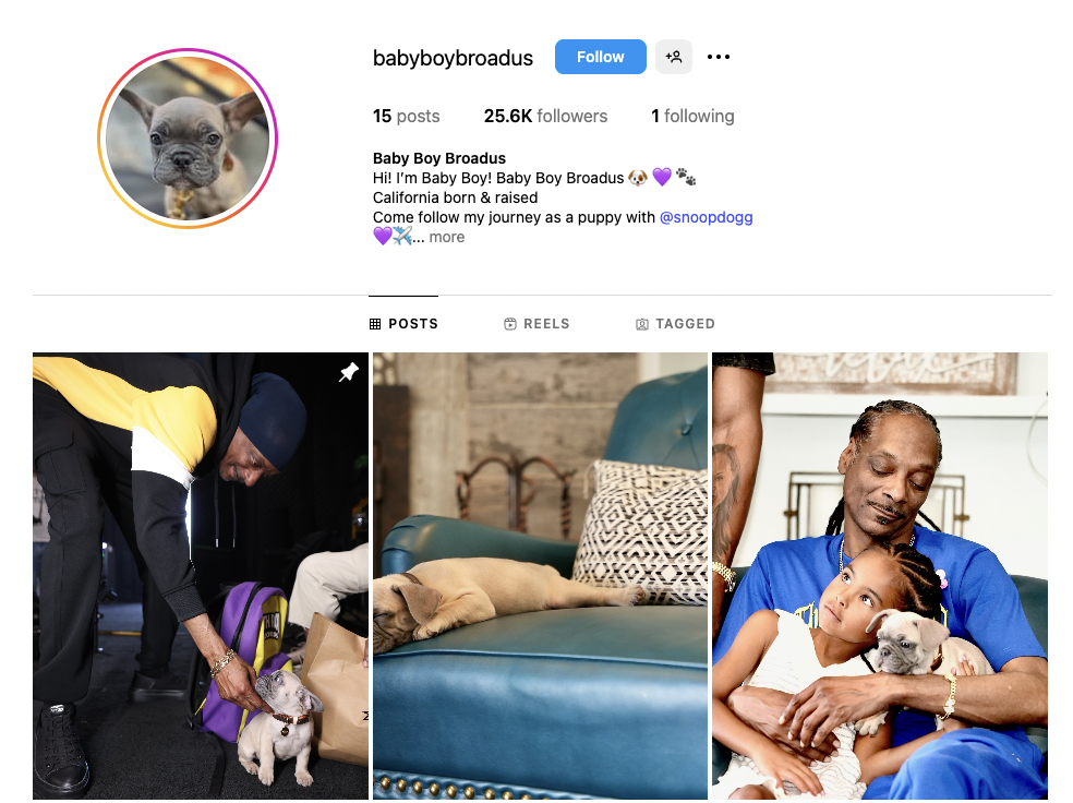 Δύο εβδομάδες αφότου αποχαιρέτησε τον αγαπημένο του γαλλικό μπουλντόγκ, τον Juelz, ο Snoop Dogg σύστησε στους θαυμαστές του το νέο του κουτάβι, τον BabyBoy Broadus.