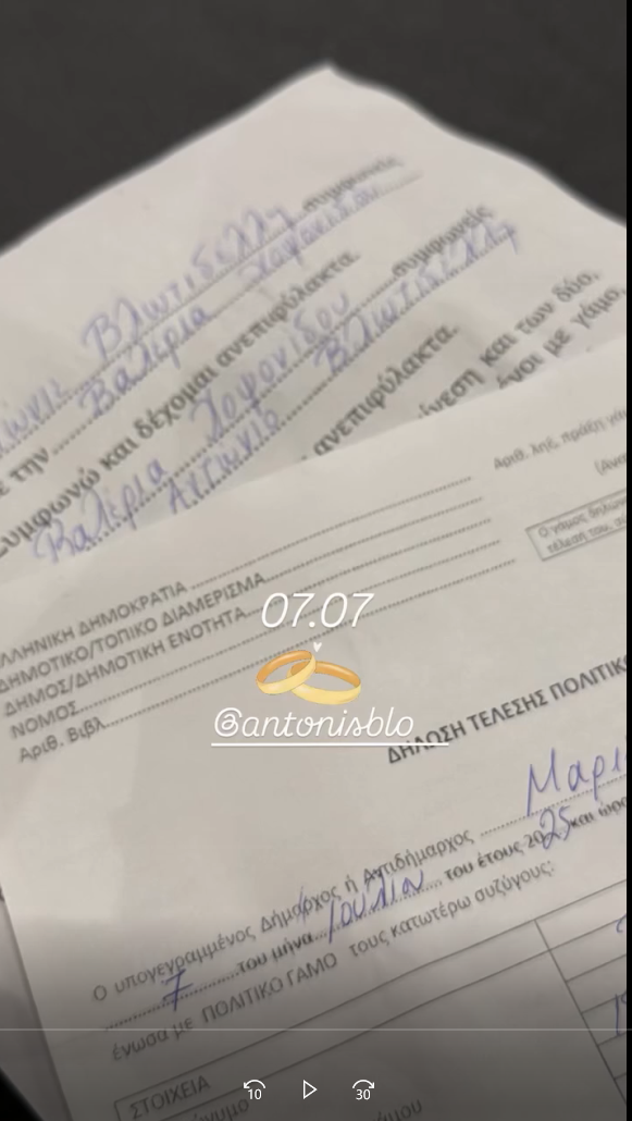 Η Βαλέρια Χοψονίδου βιώνει την πιο ευτυχισμένη περίοδο της ζωής της, καθώς βρίσκεται σε προχωρημένη εγκυμοσύνη, αναμένοντας τον ερχομό του πρώτου της παιδιού με τον σύντροφό της, Αντώνη Βλωτιδέλλη. Το ζευγάρι, που επιθυμούσε διακαώς να αποκτήσει οικογένεια, έκανε το μεγάλο βήμα: λίγο πριν τη γέννα, επισφράγισε τον δεσμό του με πολιτικό γάμο!