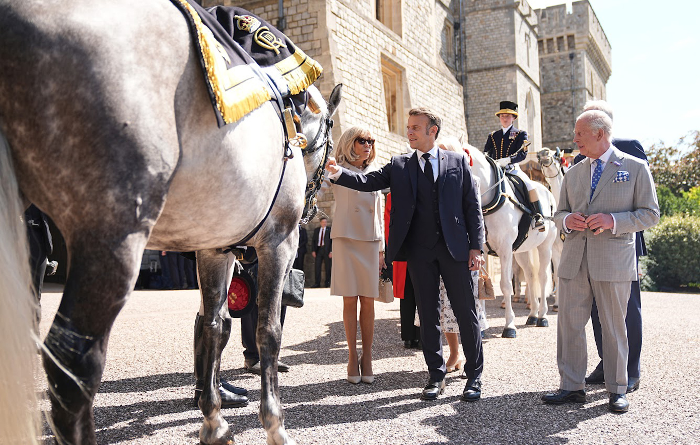 Κατά την δεύτερη ημέρα της επίσημης επίσκεψης του προέδρου των Γάλλων, Εμανουέλ Μακρόν και της συζύγου του στο Ηνωμένο Βασίλειο, ο Βασιλιάς Κάρολος επέλεξε να φορέσει μια γραβάτα με ελληνικές σημαίες.