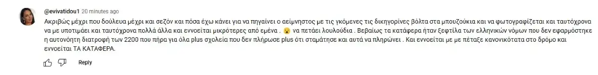 Βεβαίως τα κατάφερα. Ήταν ξεφτίλα των ελληνικών νόμων που δεν εφαρμόστηκε η αυτονόητη διατροφή των 2200 που πήρα για όλα, plus σχολεία που δεν πλήρωσε, plus ότι σταμάτησε και αυτά να πληρώνει. Και εννοείται με πέταξε κανονικότατα στο δρόμο και εννοείται ΤΑ ΚΑΤΑΦΕΡΑ» γράφει σε ένα από τα σχόλιά της η Εύη Βατίδου.