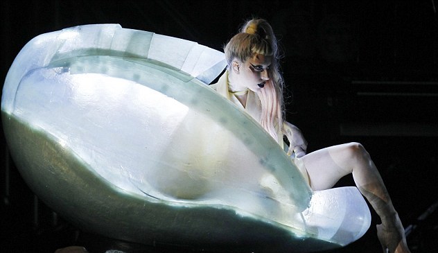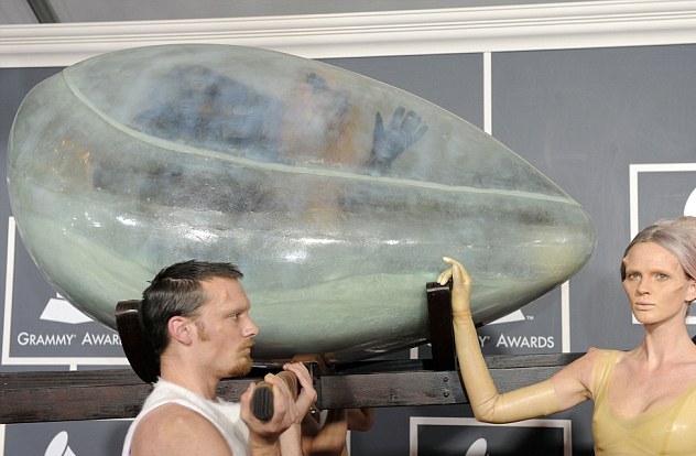 Αναμφισβήτητα η πιο εκκεντρική εμφάνιση στο κόκκινο χαλί των βραβείων Grammy ήταν αυτή της Lady Gaga. Η τραγουδίστρια πρωτοτύπησε, καθώς ήταν κλεισμένη σε ένα τεράστιο αυγό, το οποίο κουβαλούσαν οι χορευτές της! Στα Grammy τραγούδησε live για πρώτη φορά το νέο της τραγούδι, «Born this way» και κατάφερε ακόμη μια φορά να γίνει αντικείμενο σχολιασμού με την εμφάνισή της.