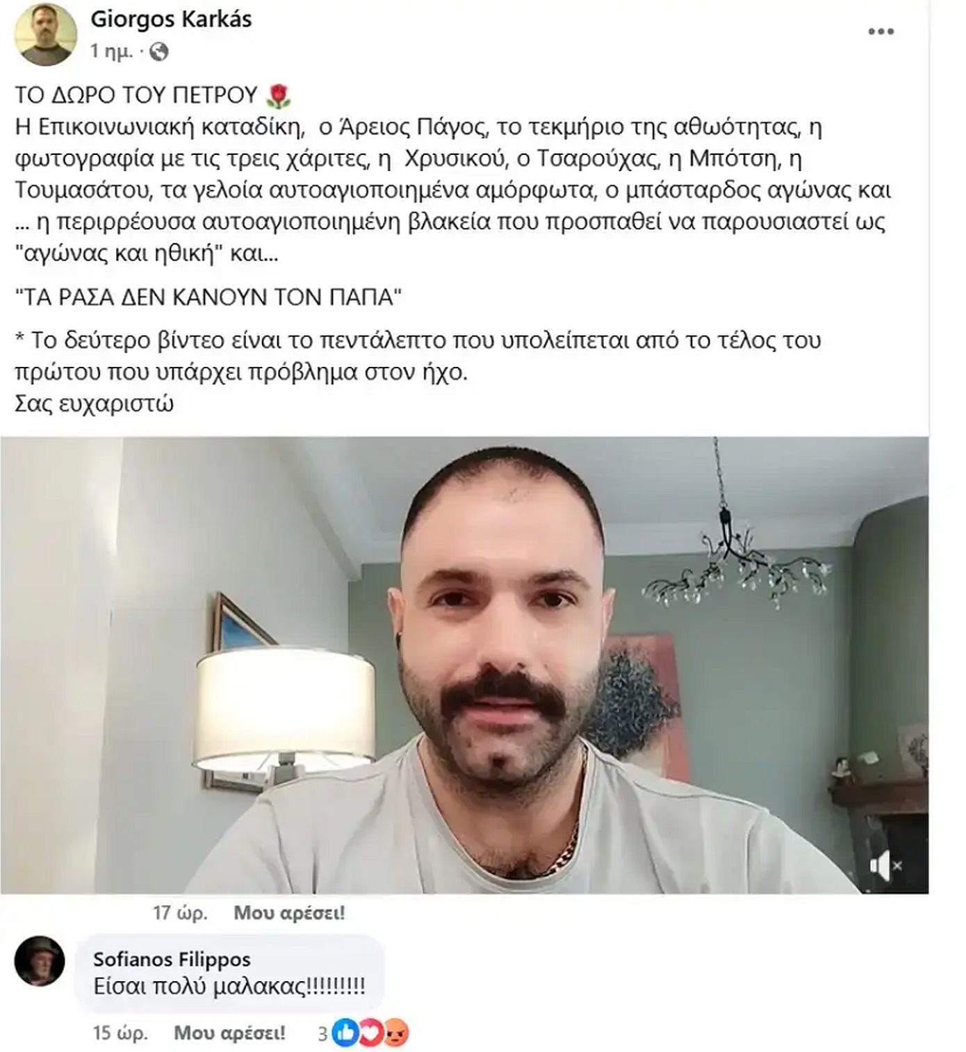 Ο Φίλιππος Σοφιανός δεν έκρυψε τη δυσαρέσκεια του απέναντι σε ένα βίντεο που ανέβασε ο Γιώργος Καρκάς στα κοινωνικά δίκτυα.