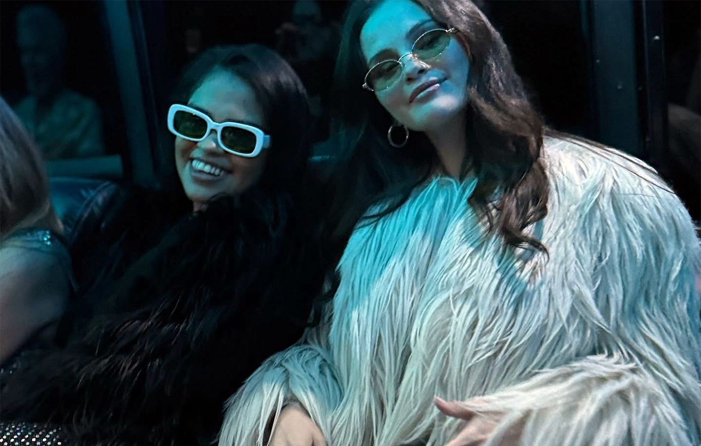 Η Σουίφτ εμφανίστηκε κομψή, με μαύρο μακρυμάνικο φόρεμα και τα χαρακτηριστικά κόκκινα χείλη της, ενώ η Γκόμεζ επέλεξε μια ολόσωμη μαύρη φόρμα με παγιέτες και γούνινο λευκό πανωφόρι, πλήρως εναρμονισμένη με το στιλ της εποχής.