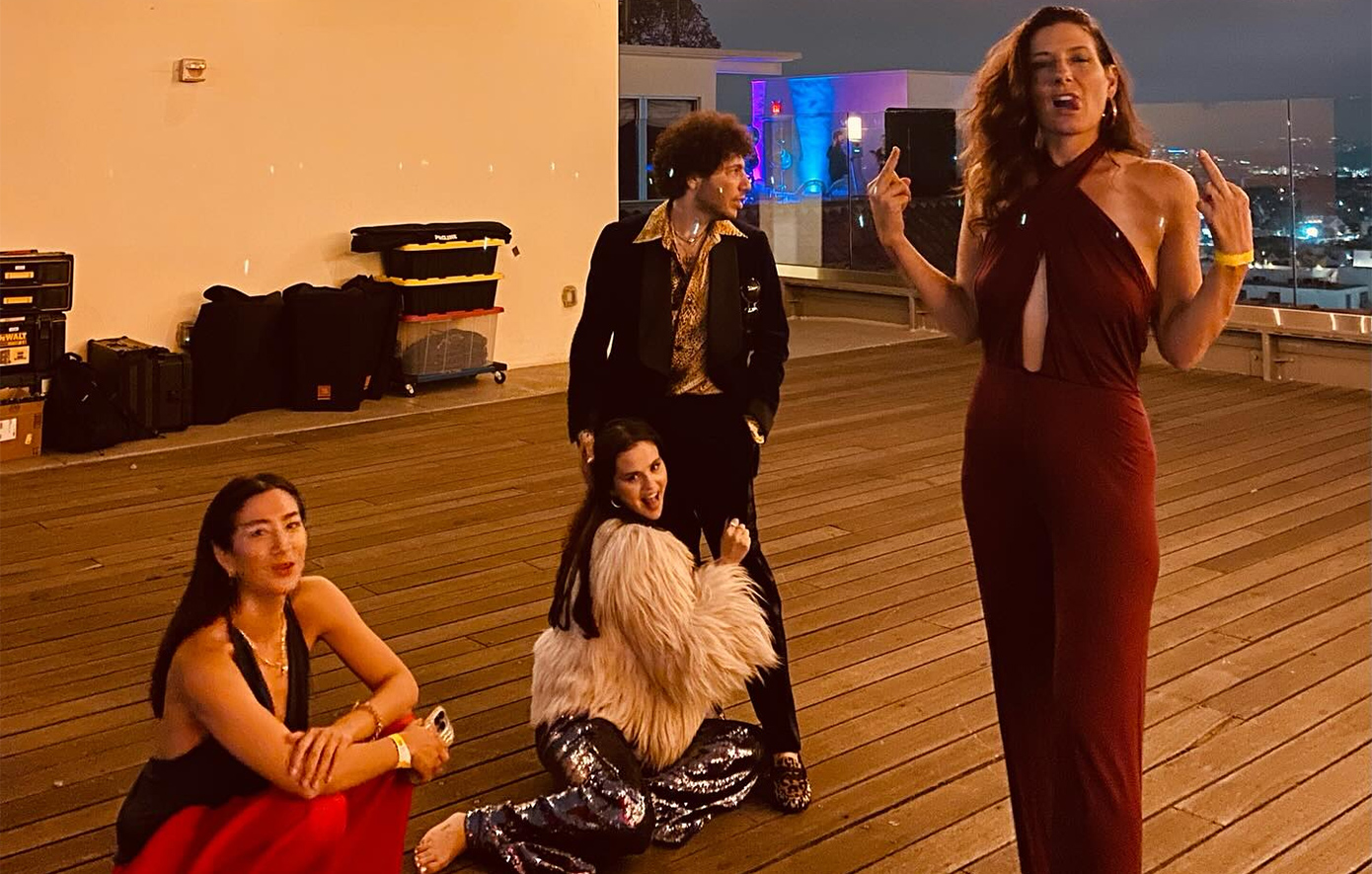 Η εορτάζουσα φωτογραφήθηκε χαμογελαστή μαζί με την παρέα της, στην οποία βρισκόταν και η Σοφία Κάρσον, σε ταράτσα του χώρου, ενώ δεν έλειψε και μια τρυφερή στιγμή, καθώς αντάλλαξε παθιασμένο φιλί με τον 37χρονο Μπλάνκο κατά τη διάρκεια του soirée.