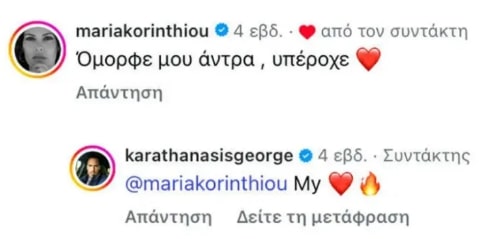 Ένα τρυφερό δημόσιο σχόλιο στον νέο της σύντροφο, Γιώργο Καραθανάση, είχε κάνει η Μαρία Κορινθίου, λίγο πριν επιβεβαιώσει δημόσια τη σχέση τους.