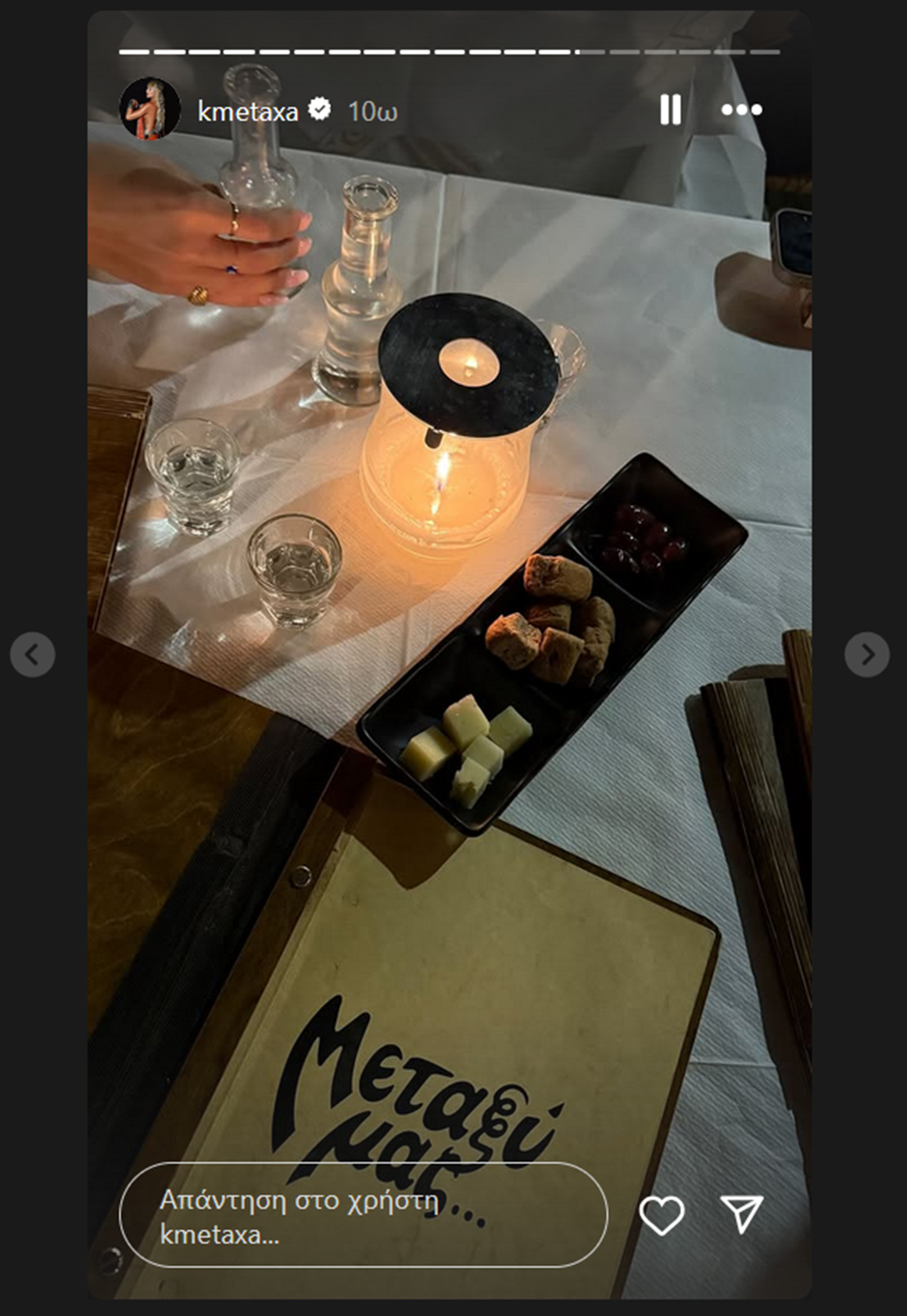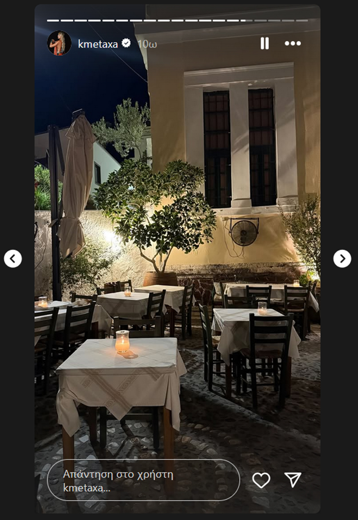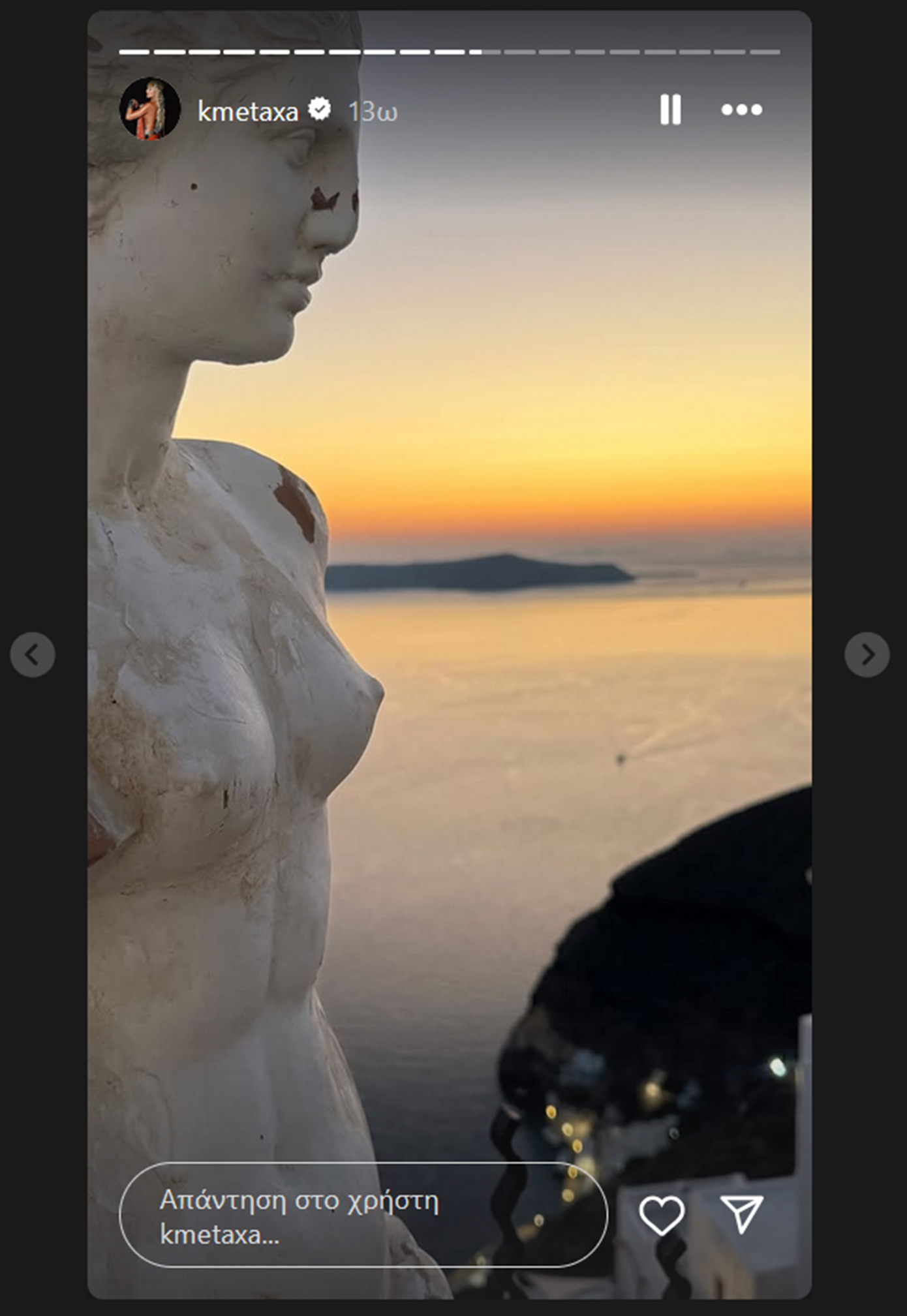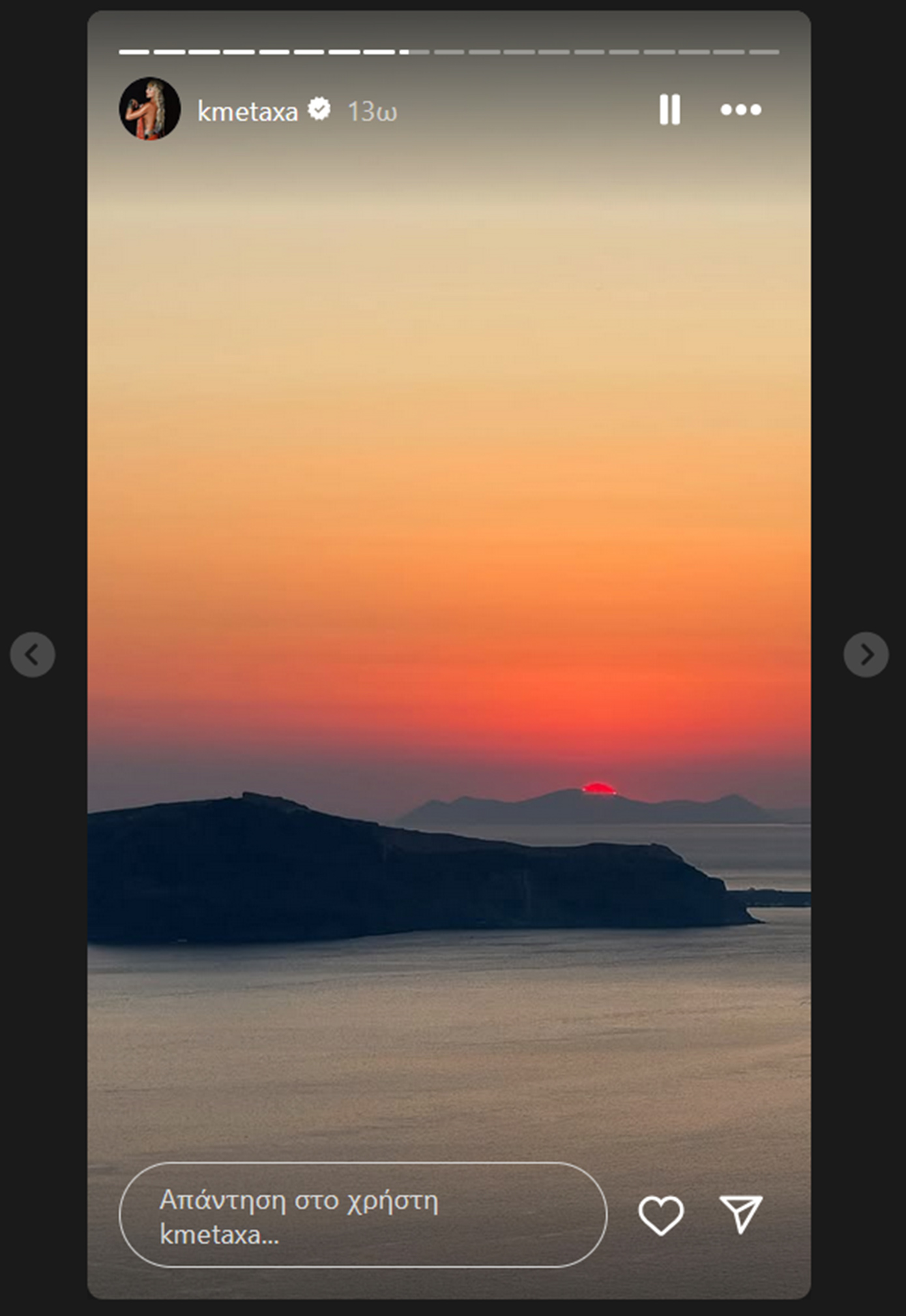 Μέσα από τις φωτογραφίες που ανάρτησε, η Κόνι Μεταξά αποκάλυψε σημεία της Σαντορίνης που την εντυπωσίασαν, ενώ σε ορισμένα στιγμιότυπα ποζάρει χαμογελαστή, κρατώντας ένα κόκκινο τριαντάφυλλο, απολαμβάνοντας τη ρομαντική ατμόσφαιρα του νησιού.