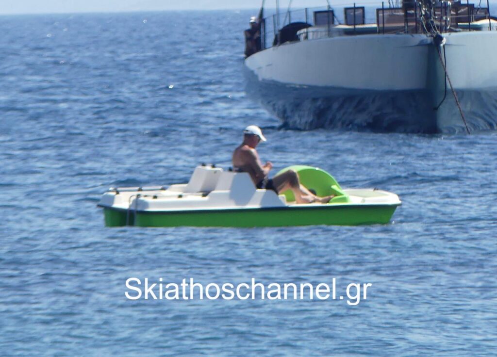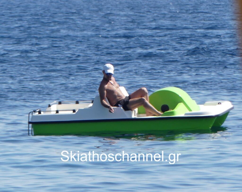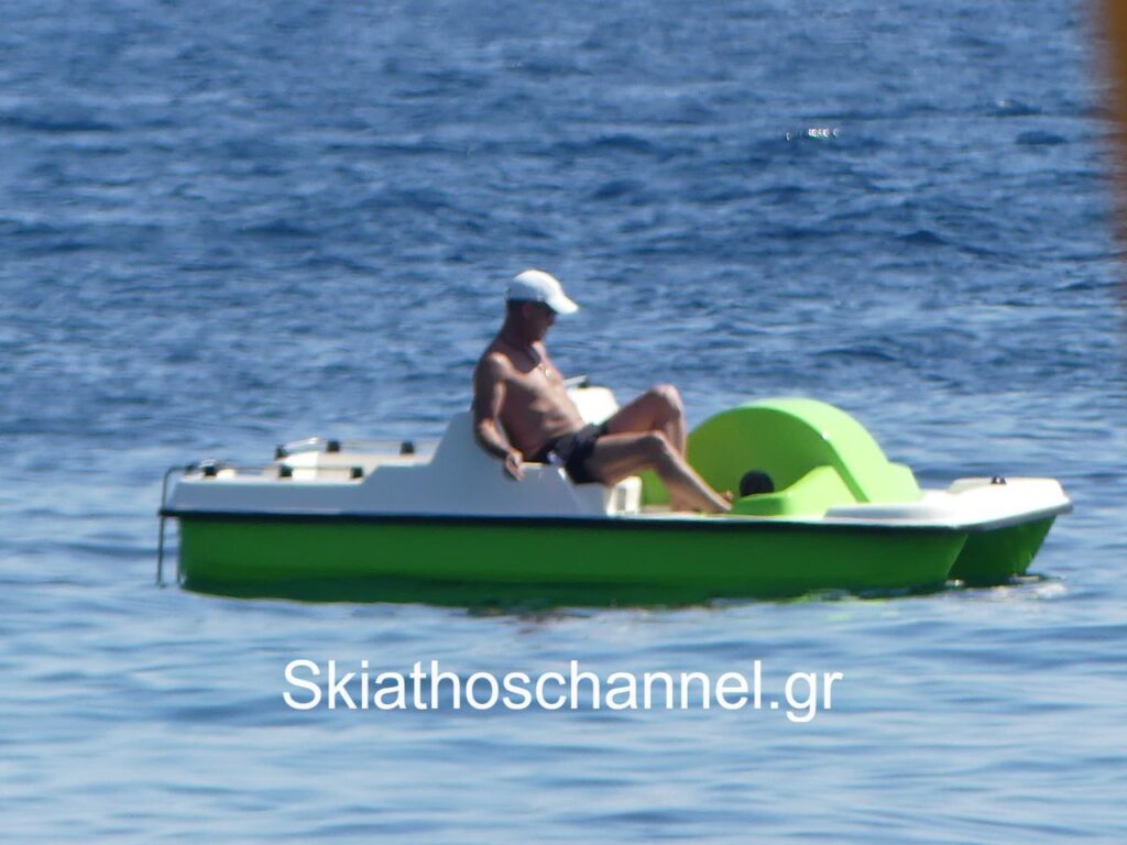 Οι αποκλειστικές εικόνες από το Skiathoschannel αποκαλύπτουν μια διαφορετική πλευρά του «Μήτσου». Αντί για beach soccer ή παρτίδες τάβλι, ο φακός τον απαθανάτισε να κάνει πετάλι με ένα θαλάσσιο ποδήλατο, εξοπλισμένο με όλα τα απαραίτητα είδη ψαρέματος, κατευθυνόμενος προς τα βαθύτερα σημεία της παραλίας.