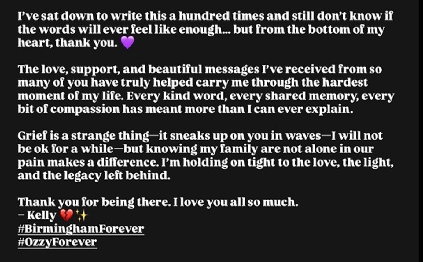 Η Κέλι Όσμπορν μοιράστηκε με το κοινό το πένθος και τη βαθιά της θλίψη μετά τον θάνατο του πατέρα της, Όζι , αποκαλύπτοντας πως βιώνει τη δυσκολότερη περίοδο της ζωής της.