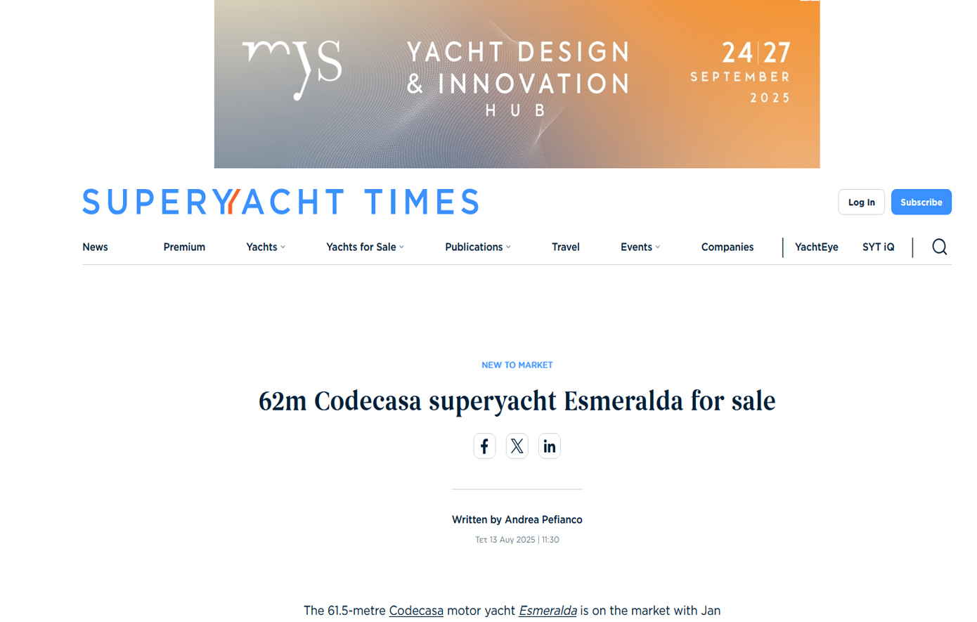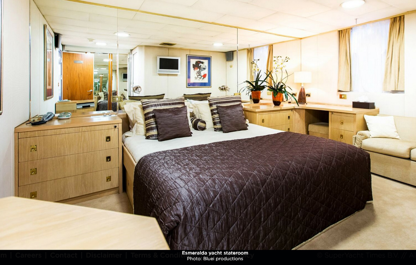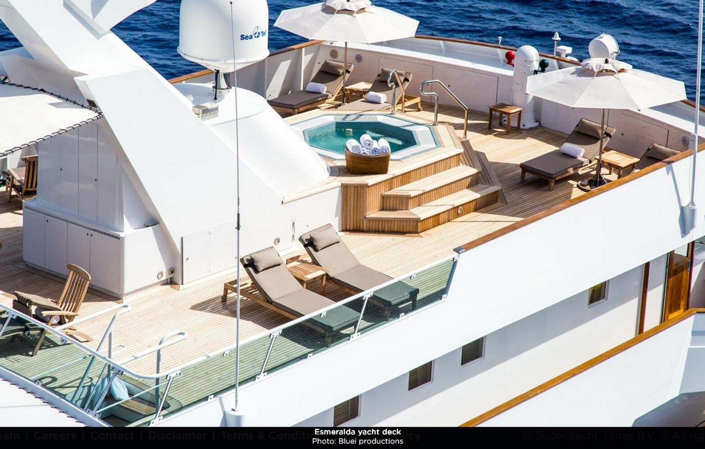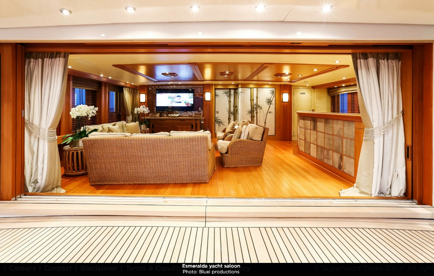 Στην αγγελία της πώλησης που αναρτήθηκε από τον Οίκο της «Fraser Yachts» αναφέρεται μεταξύ άλλων «Συνδυάζοντας διαχρονική ιταλική δεξιοτεχνία με αποδεδειγμένη απόδοση στην ανοιχτή θάλασσα, το “Esmeralda” παρουσιάζει ανθεκτικές εξωτερικές γραμμές και μια μοναδική διάταξη που μεγιστοποιεί τη χωρητικότητα και την άνεση των επισκεπτών.