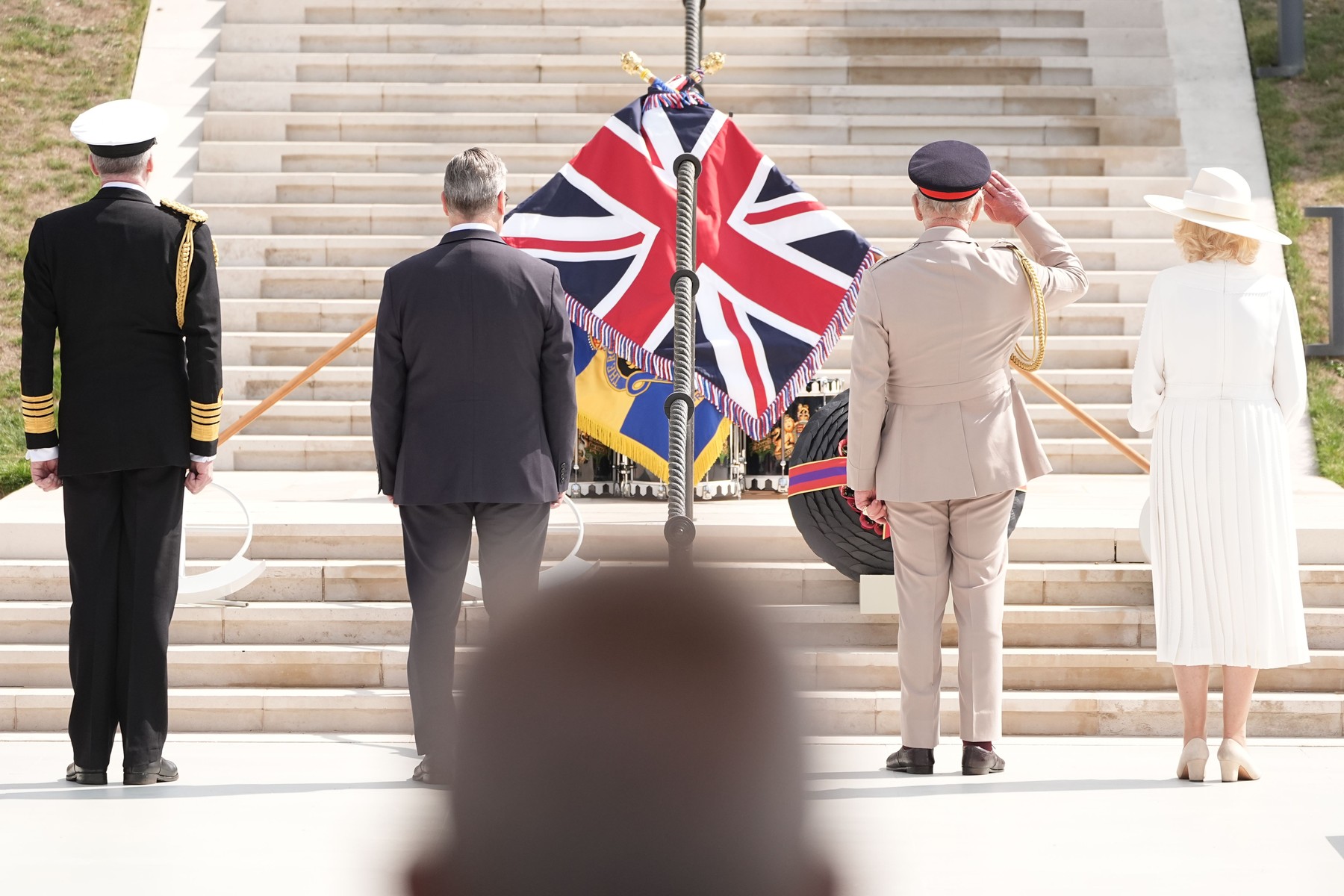 Ο Κάρολος, φορώντας την επίσημη στολή του Στρατάρχη, κατέθεσε στεφάνι στο Μνημείο των Ενόπλων Δυνάμεων, ενώ η Καμίλα άφησε ένα μπουκέτο λουλούδια. Η τελετή ολοκληρώθηκε με την καθιερωμένη δίλεπτη σιγή στη μνήμη των θυμάτων.