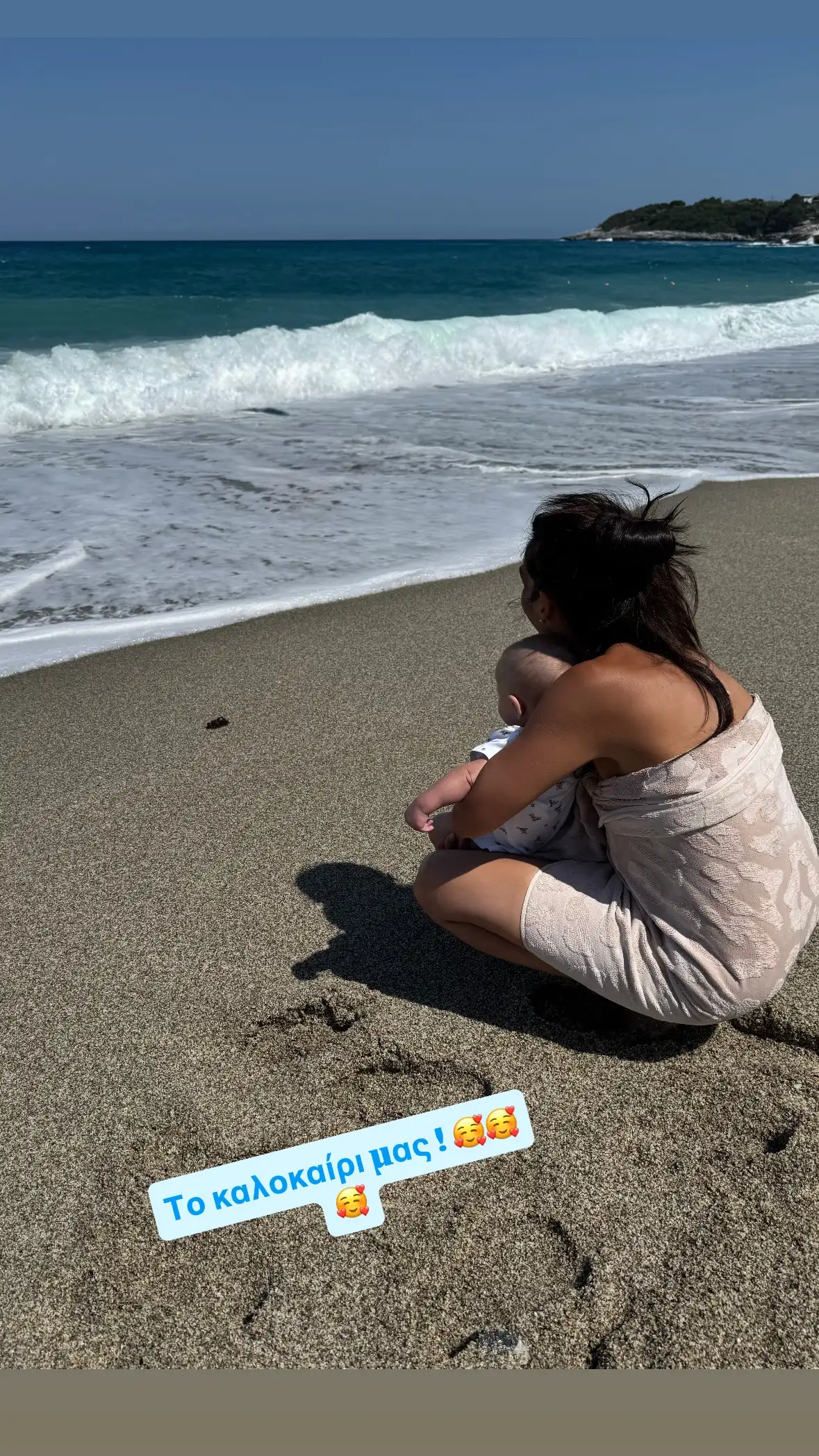 Αυτές τις μέρες η παρουσιάστρια βρίσκεται στο Πήλιο, τον τόπο καταγωγής της, όπου περνά χρόνο με τον γιο της, προετοιμάζοντας παράλληλα τη βάπτισή του. Μέσα σε αυτό το διάστημα βρίσκει την ευκαιρία να χαλαρώσει και να ζήσει όμορφες στιγμές ξεγνοιασιάς. Το απόγευμα του Σαββάτου πραγματοποίησε μια βόλτα στην παραλία μαζί του και ανάρτησε σχετική φωτογραφία στον προσωπικό της λογαριασμό στο Instagram.