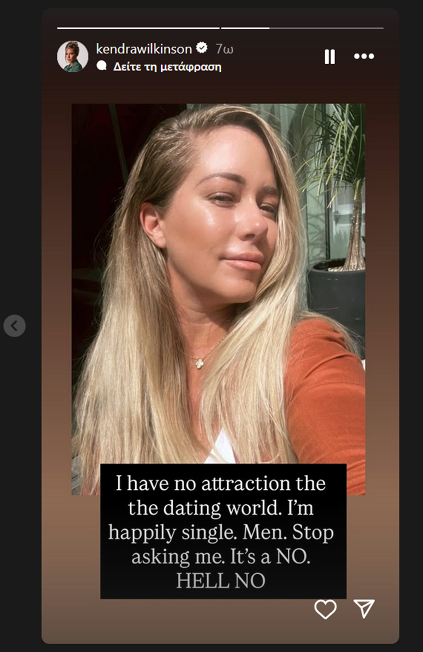 Μέσα από μια selfie στους τρεις εκατομμύρια ακολούθους της στο Instagram, έστειλε ένα σαφές μήνυμα: «Δεν έχω καμία έλξη για τον κόσμο των ραντεβού. Είμαι χαρούμενη μόνη μου. Άντρες, σταματήστε να με ρωτάτε. Είναι ΟΧΙ. Με κεφαλαία ΟΧΙ».
