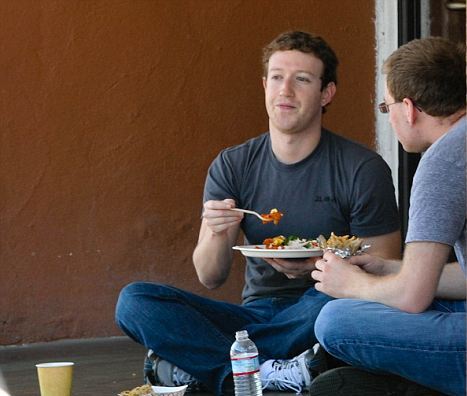 Αν και είναι από τους πιο πλούσιους ανθρώπους στον κόσμο, ο ιδρυτής του facebook, Mark Zuckerberg, έχει δείξει πολλάκις ότι δεν του αρέσει η πολυτέλεια στη ζωή του. Ντυμένος καθημερινά και απλά ο Mark Zuckerberg απόλαυσε στο… πάτωμα τάκος κοτόπουλου και σίγουρα θα μπορούσε κανείς να τον περάσει για φοιτητή στην Αμερική, παρά για δισεκατομμυριούχο.