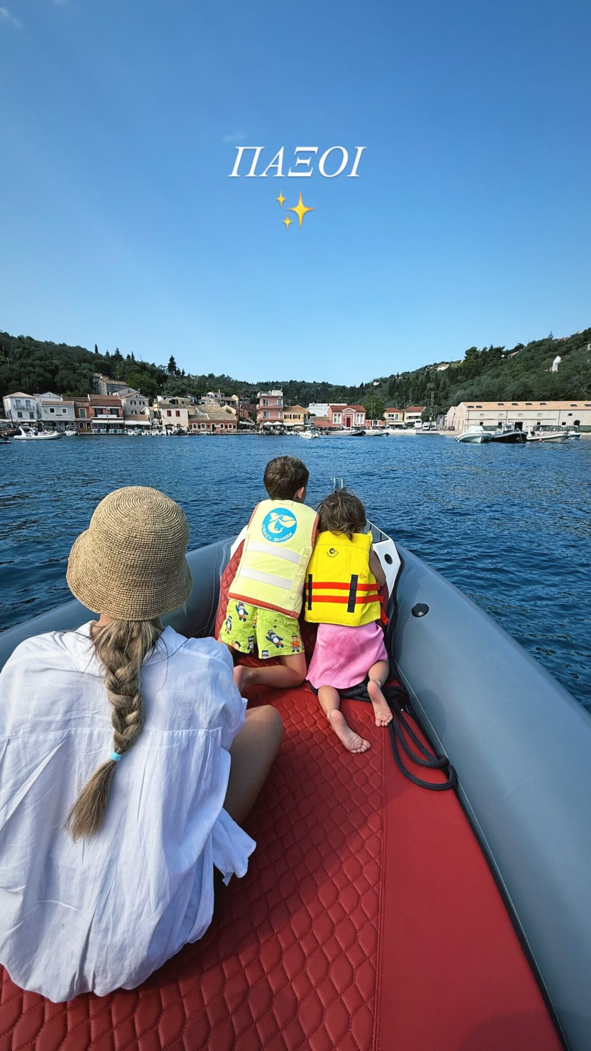 Το ζευγάρι μαζί με τα παιδιά της ηθοποιού πήραν φουσκωτό στις παραλίες του νησιού, σε πανέμορφα νερά, και επισκέφτηκαν το λιμάνι του Γάιου και τις Γαλάζιες Σπηλιές αλλά και τους Αντίπαξους. Η Αθηνά Οικονομάκου μοιράστηκε φωτογραφίες στα Instagram Stories της.